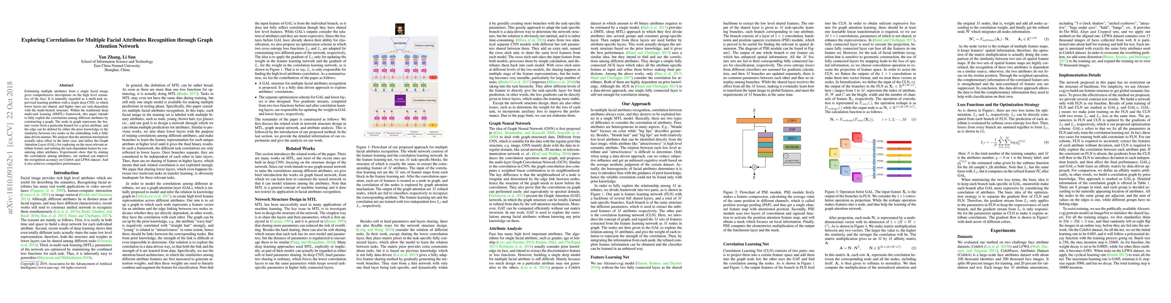 This paper proposes a graph attention network to explore correlations among multiple facial attributes, using a multi-branch deep CNN with a Graph Attention Layer to refine task-dependent features. The method improves recognition accuracy on CelebA and LFWA datasets by leveraging attribute correlations.