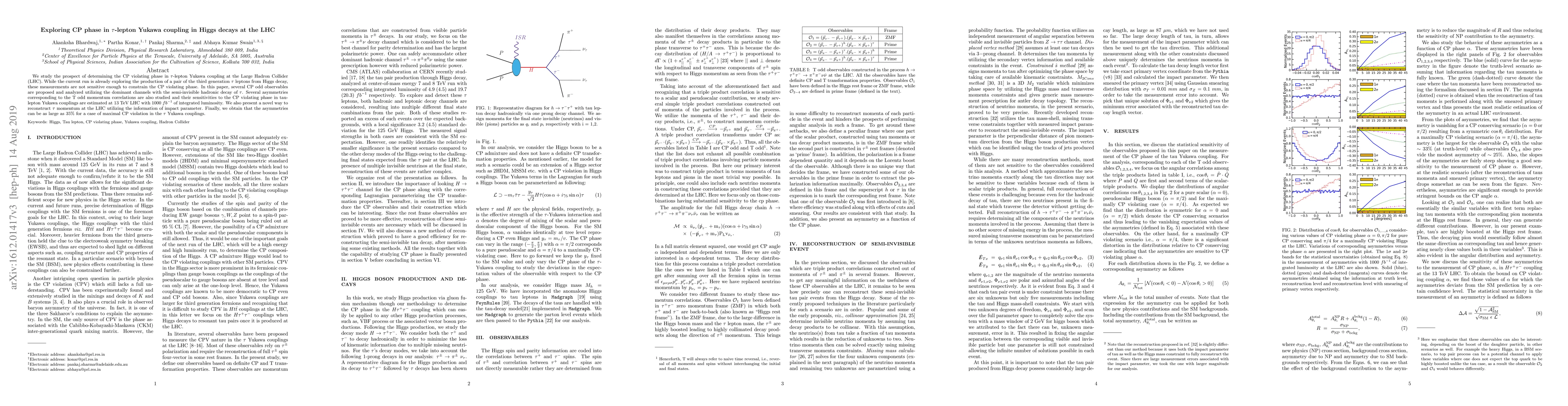 This paper proposes new CP-odd observables and asymmetries to determine the CP violating phase in $\tau$-lepton Yukawa coupling in Higgs decays at the LHC, estimating sensitivities up to 35% for maximal CP violation. A novel method for reconstructing $\tau$ momentum using impact parameter information is also introduced.