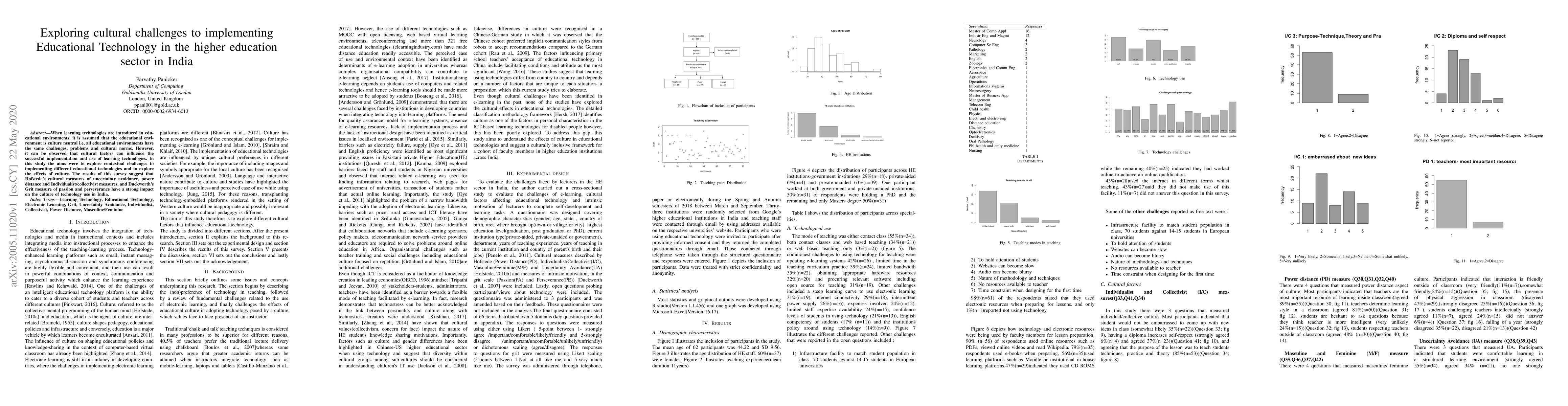 This study investigates the cultural challenges affecting the implementation of educational technology in Indian higher education, revealing that Hofstede's cultural dimensions and Duckworth's Grit measure significantly influence technology adoption and usage in this context.