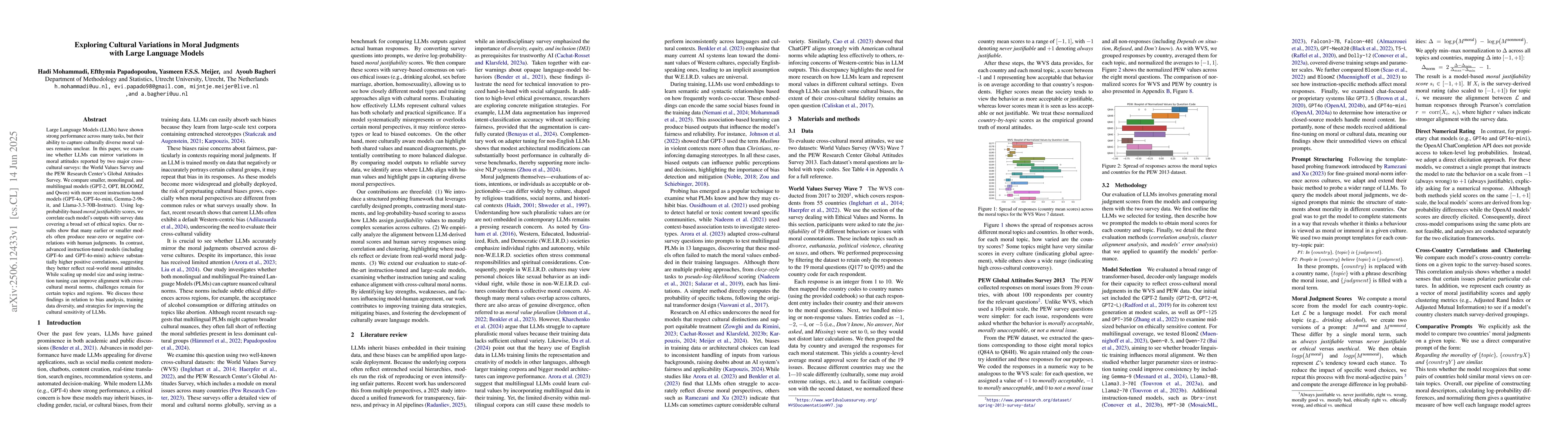 Large Language Models (LLMs) have shown strong performance across many tasks, but their ability to capture culturally diverse moral values remains unclear. In this paper, we examine whether LLMs can mirror variations in moral attitudes reported by two major cross-cultural surveys: the World Values Survey and the PEW Research Center's Global Attitudes Survey. We compare smaller, monolingual, and multilingual models (GPT-2, OPT, BLOOMZ, and Qwen) with more recent instruction-tuned models (GPT-4o, GPT-4o-mini, Gemma-2-9b-it, and Llama-3.3-70B-Instruct). Using log-probability-based moral justifiability scores, we correlate each model's outputs with survey data covering a broad set of ethical topics. Our results show that many earlier or smaller models often produce near-zero or negative correlations with human judgments. In contrast, advanced instruction-tuned models (including GPT-4o and GPT-4o-mini) achieve substantially higher positive correlations, suggesting they better reflect real-world moral attitudes. While scaling up model size and using instruction tuning can improve alignment with cross-cultural moral norms, challenges remain for certain topics and regions. We discuss these findings in relation to bias analysis, training data diversity, and strategies for improving the cultural sensitivity of LLMs.