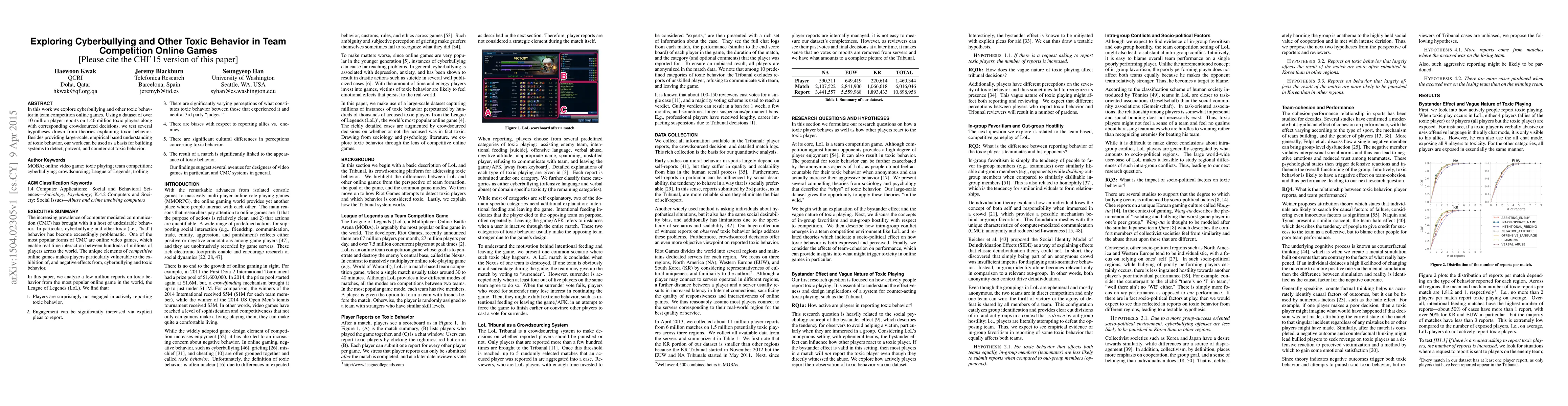 This research investigates cyberbullying and toxic behavior in team competition online games using a dataset of over 10 million player reports. The findings provide empirical insights into toxic behavior and offer a foundation for developing systems to detect and mitigate such behavior.