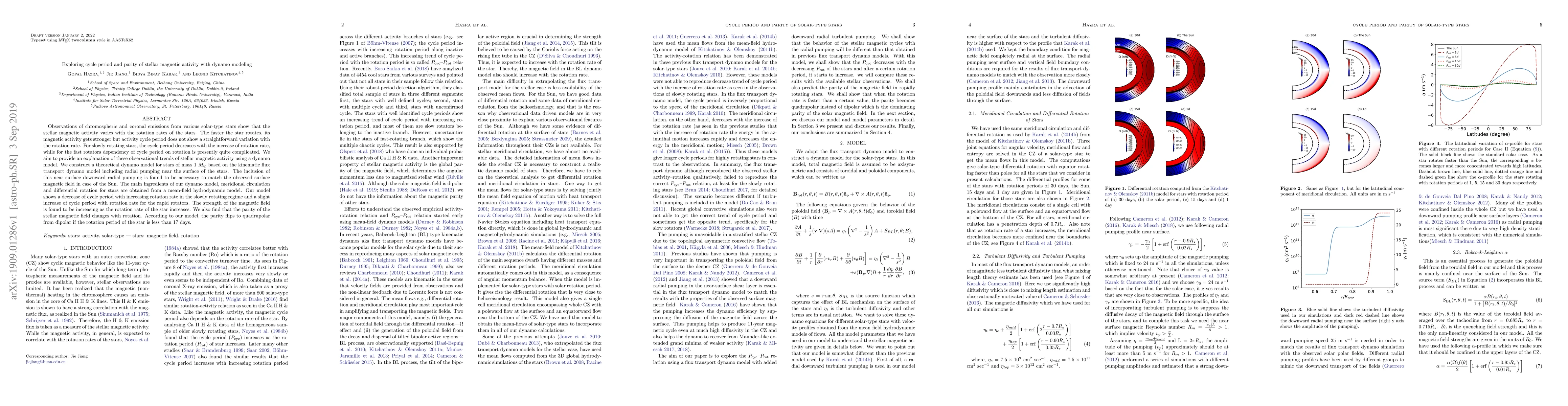 This paper explores stellar magnetic activity trends using a dynamo model, finding that cycle period decreases with rotation for slow rotators but increases slightly for fast rotators. The model also predicts a change in magnetic field parity from dipolar to quadrupolar below a 17-day rotation period.