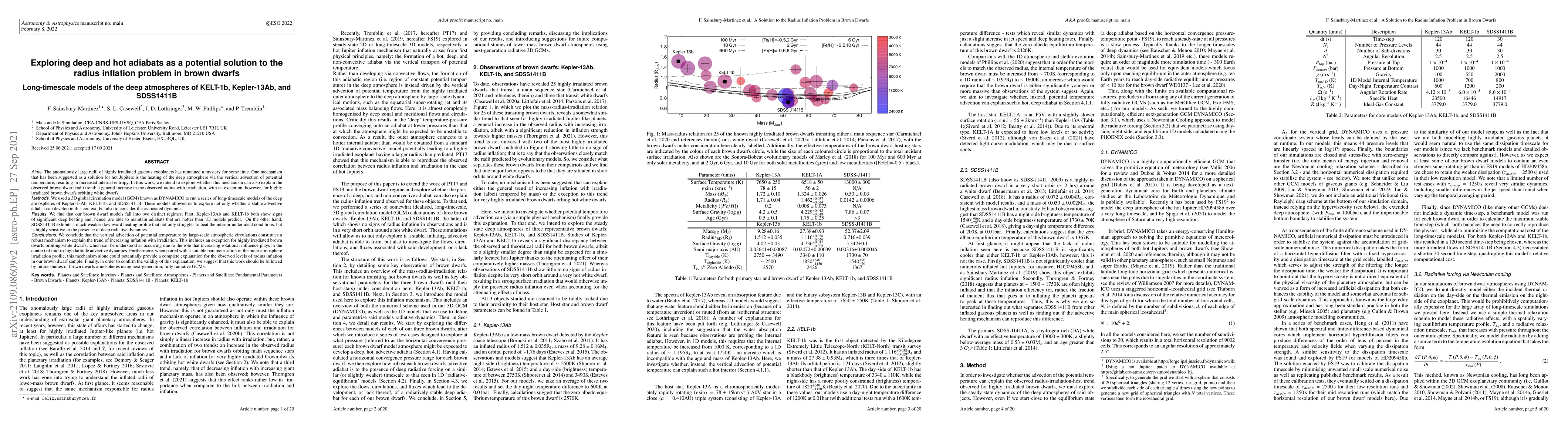 The anomalously large radii of highly-irradiated gaseous exoplanets has long been a mystery. One mechanism suggested as a solution for hot Jupiters is the heating of the deep atmosphere via the vertical advection of potential temperature resulting in an increased internal entropy. Here we intend to explore if this mechanism can also explain the observed brown dwarf radii trend: a general increase in radius with irradiation, with an exception for highly-irradiated brown dwarfs orbiting white dwarfs. We use a 3D GCM, DYNAMICO, to run a series of long-timescale models of the atmospheres of Kepler-13Ab, KELT-1b, and SDSS1411B. These models allow us to explore not only if a stable advective adiabat can develop, but also the associated dynamics. We find that our models fall into two distinct regimes: Kepler-13Ab and KELT-1b both show signs of significant deep heating and hence maintain adiabats that are hotter than 1D models predict. On the other hand, SDSS1411B exhibits a much weaker downward heating profile which not only struggles to heat the interior under ideal conditions, but is highly sensitive to the presence of deep radiative dynamics. We find that the vertical advection of potential temperature by large-scale atmospheric circulations represents a robust mechanism to explain the trend of increasing inflation with irradiation, including the exception for highly irradiated brown dwarfs orbiting white dwarfs. This can be understood as occurring due to the role that increasing rotational influence plays on mid- to-high latitude advective dynamics. Furthermore, when paired with a suitable parametrisation of the outer atmosphere irradiation profile, this mechanism alone could potentially provide a complete explanation for the observed levels of inflation in our brown dwarfs.