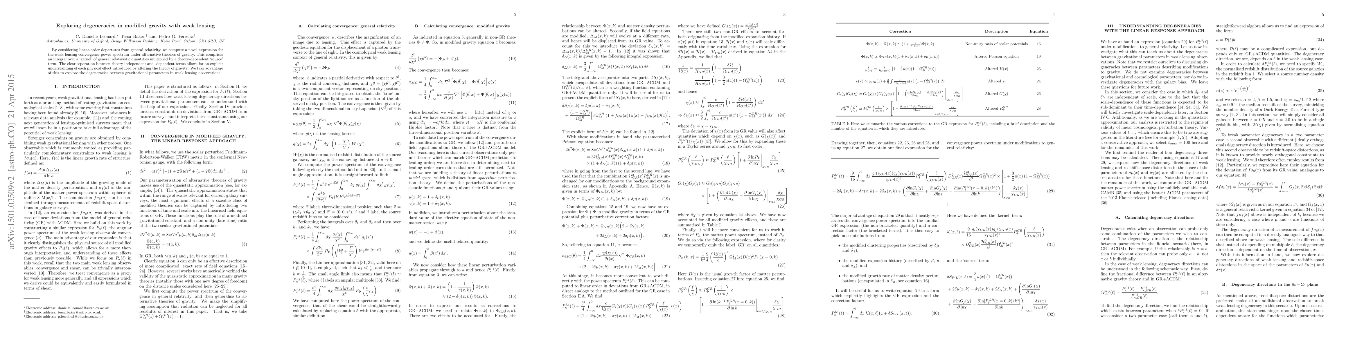 By considering linear-order departures from general relativity, we compute a novel expression for the weak lensing convergence power spectrum under alternative theories of gravity. This comprises an integral over a 'kernel' of general relativistic quantities multiplied by a theory-dependent 'source' term. The clear separation between theory-independent and -dependent terms allows for an explicit understanding of each physical effect introduced by altering the theory of gravity. We take advantage of this to explore the degeneracies between gravitational parameters in weak lensing observations.