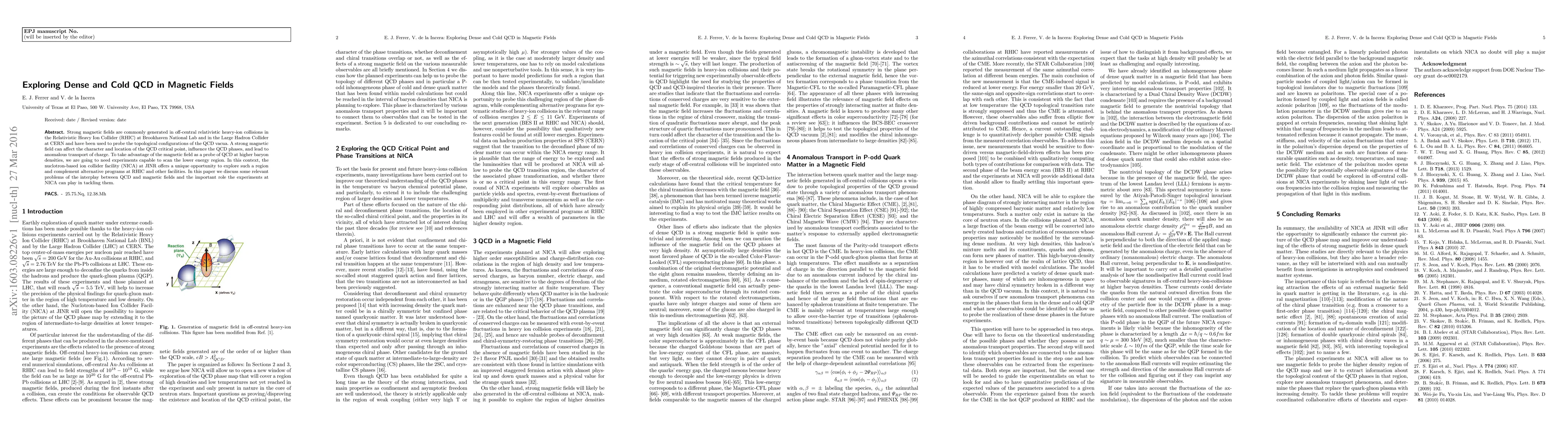 Strong magnetic fields are commonly generated in off-central relativistic heavy-ion collisions in the Relativistic Heavy Ion Collider (RHIC) at Brookhaven National Lab and in the Large Hadron Collider at CERN and have been used to probe the topological configurations of the QCD vacua. A strong magnetic field can affect the character and location of the QCD critical point, influence the QCD phases, and lead to anomalous transport of charge. To take advantage of the magnetic field as a probe of QCD at higher baryon densities, we are going to need experiments capable to scan the lower energy region. In this context, the nuclotron-based ion collider facility (NICA) at JINR offers a unique opportunity to explore such a region and complement alternative programs at RHIC and other facilities. In this paper we discuss some relevant problems of the interplay between QCD and magnetic fields and the important role the experiments at NICA can play in tackling them.