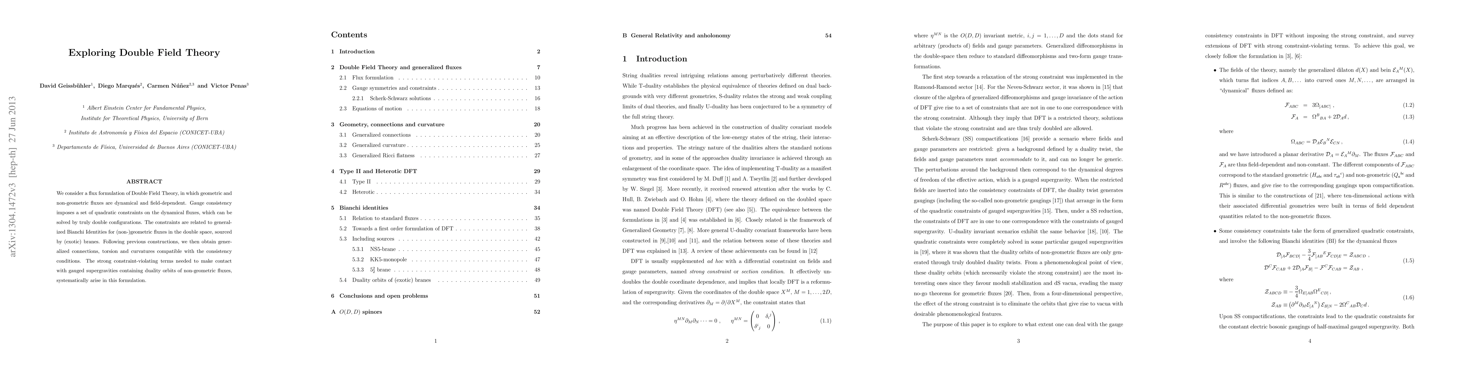 This paper introduces a flux formulation of Double Field Theory where both geometric and non-geometric fluxes are dynamic and field-dependent. It establishes quadratic constraints on fluxes through gauge consistency, which are solved by double configurations, and relates these to generalized Bianchi Identities sourced by exotic branes.