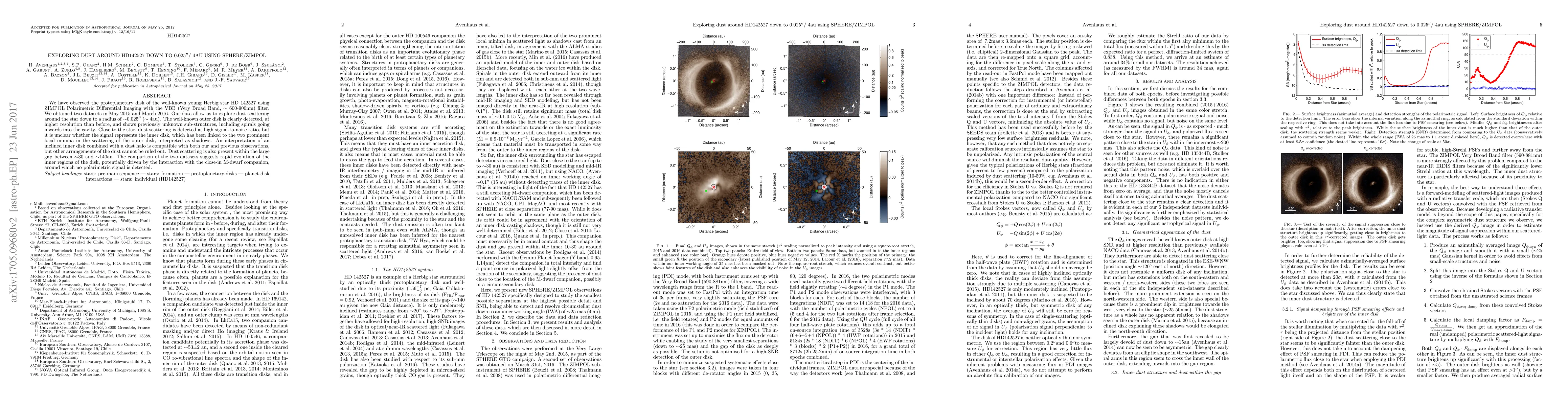 This study uses SPHERE/ZIMPOL to observe the protoplanetary disk around HD 142527, revealing high-resolution details of dust scattering down to 0.025" (~4au). The observations detect previously unknown sub-structures, including inward spirals and dust scattering within the large gap, suggesting rapid evolution possibly driven by the inner M-dwarf companion.