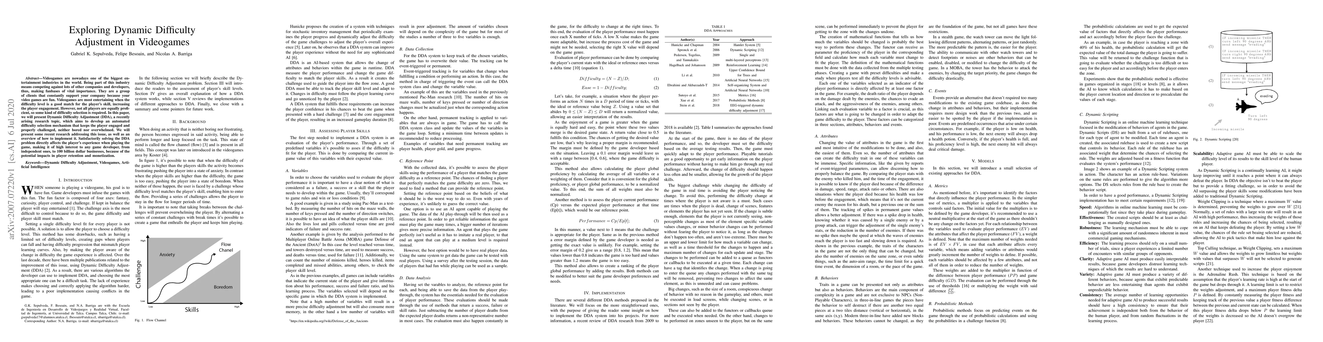This paper explores Dynamic Difficulty Adjustment (DDA) in video games, aiming to automatically adjust game difficulty to match player skill, thereby enhancing engagement and retention. It reviews recent research and implementation strategies, emphasizing the importance of DDA for improving player experience and its potential impact on player retention and monetization.