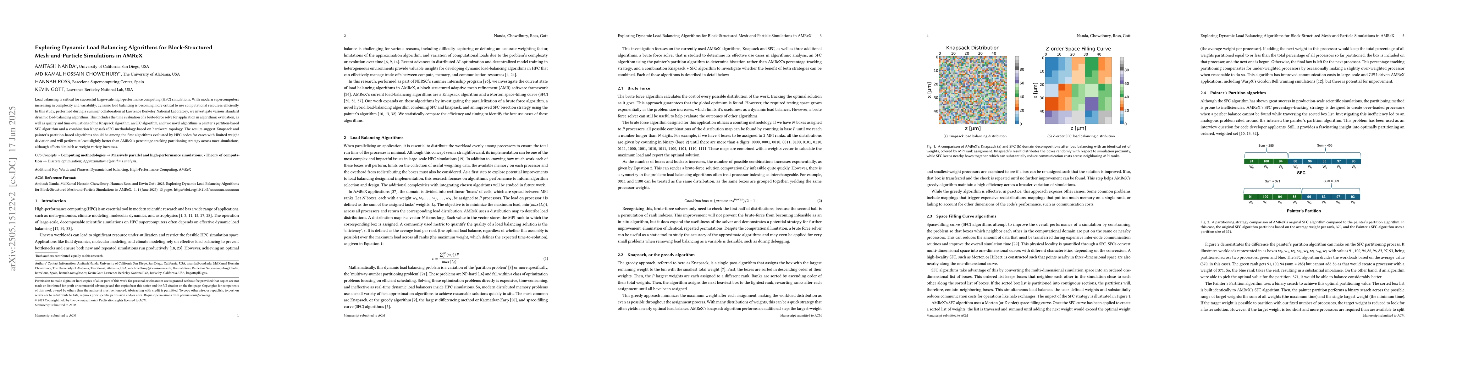 Researchers evaluated various dynamic load-balancing algorithms for high-performance computing simulations, finding that Knapsack and a novel painter's partition-based algorithm outperform existing strategies in certain cases, offering hope for more efficient use of computational resources.