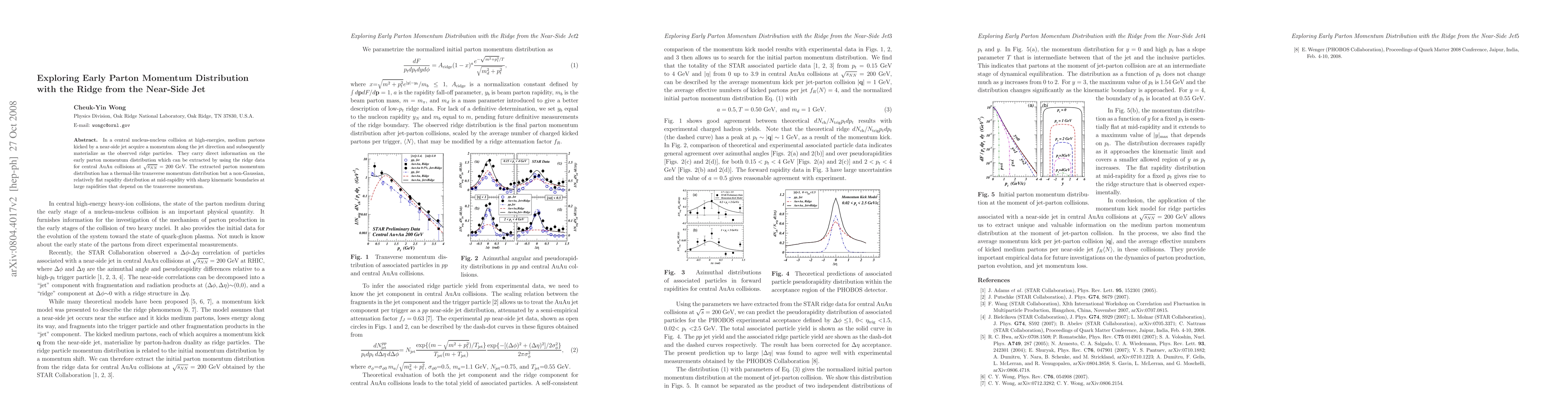 In a central nucleus-nucleus collision at high-energies, medium partons kicked by a near-side jet acquire a momentum along the jet direction and subsequently materialize as the observed ridge particles. They carry direct information on the early parton momentum distribution which can be extracted by using the ridge data for central AuAu collisions at \sqrt{s_{NN}}=200 GeV. The extracted parton momentum distribution has a thermal-like transverse momentum distribution but a non-Gaussian, relatively flat rapidity distribution at mid-rapidity with sharp kinematic boundaries at large rapidities that depend on the transverse momentum.