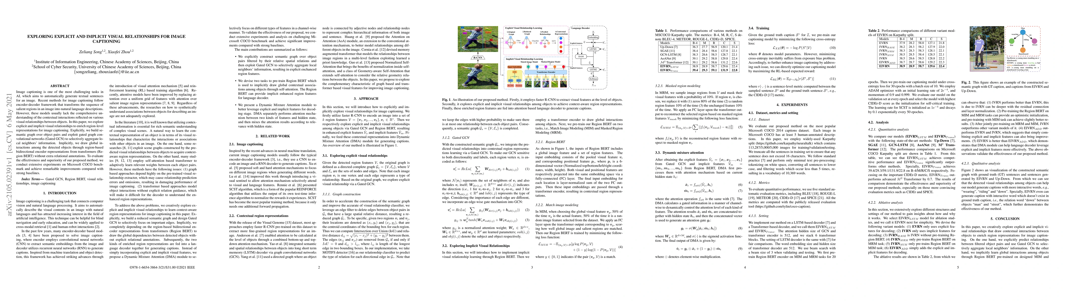 This paper explores explicit and implicit visual relationships to enhance region-level representations for image captioning. It uses gated graph convolutional networks for explicit relationships and Region BERT for implicit interactions, achieving significant improvements over baselines on the Microsoft COCO dataset.