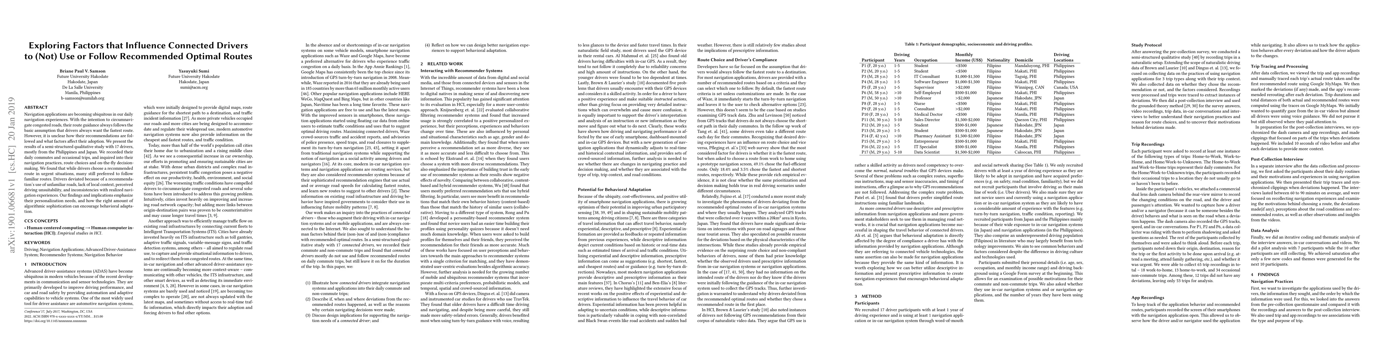 Navigation applications are becoming ubiquitous in our daily navigation experiences. With the intention to circumnavigate congested roads, their route guidance always follows the basic assumption that drivers always want the fastest route. However, it is unclear how their recommendations are followed and what factors affect their adoption. We present the results of a semi-structured qualitative study with 17 drivers, mostly from the Philippines and Japan. We recorded their daily commutes and occasional trips, and inquired into their navigation practices, route choices and on-the-fly decision-making. We found that while drivers choose a recommended route in urgent situations, many still preferred to follow familiar routes. Drivers deviated because of a recommendation's use of unfamiliar roads, lack of local context, perceived driving unsuitability, and inconsistencies with realized navigation experiences. Our findings and implications emphasize their personalization needs, and how the right amount of algorithmic sophistication can encourage behavioral adaptation.