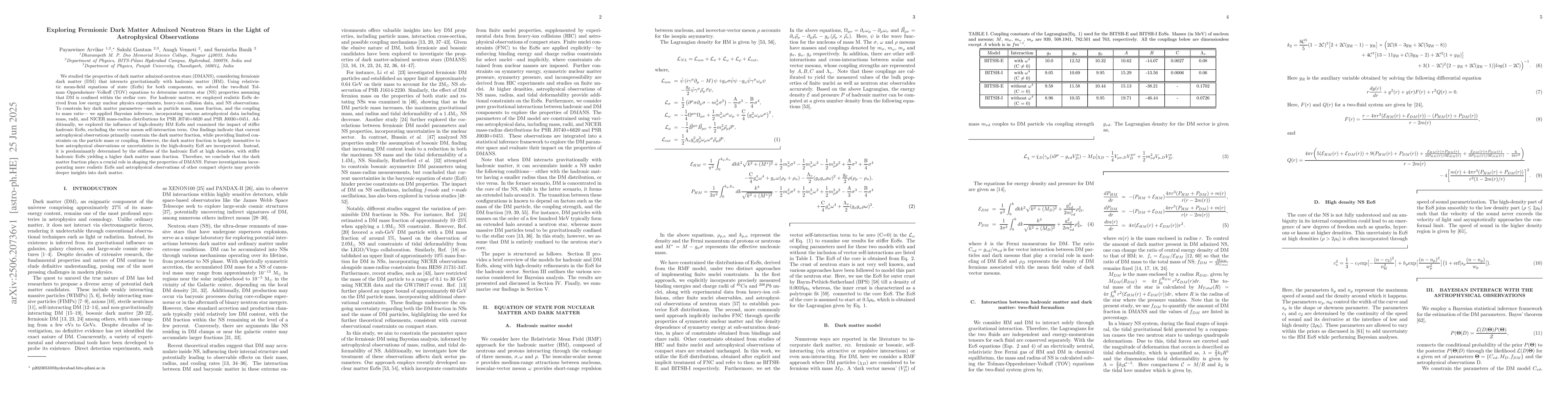 We studied the properties of dark matter admixed-neutron stars (DMANS), considering fermionic dark matter (DM) that interacts gravitationally with hadronic matter (HM). Using relativistic mean-field equations of state (EoSs) for both components, we solved the two-fluid Tolman Oppenheimer Volkoff (TOV) equations to determine neutron star (NS) properties assuming that DM is confined within the stellar core. For hadronic matter, we employed realistic EoSs derived from low energy nuclear physics experiments, heavy-ion collision data, and NS observations. To constrain key dark matter parameters such as particle mass, mass fraction, and the coupling to mass ratio, we applied Bayesian inference, incorporating various astrophysical data including mass, radii, and NICER mass-radius distributions for PSR J0740+6620 and PSR J0030+0451. Additionally, we explored the influence of high-density HM EoSs and examined the impact of stiffer hadronic EoSs, excluding the vector meson self-interaction term. Our findings indicate that current astrophysical observations primarily constrain the dark matter fraction, while providing limited constraints on the particle mass or coupling. However, the dark matter fraction is largely insensitive to how astrophysical observations or uncertainties in the high-density EoS are incorporated. Instead, it is predominantly determined by the stiffness of the hadronic EoS at high densities, with stiffer hadronic EoSs yielding a higher dark matter mass fraction. Therefore, we conclude that the dark matter fraction plays a crucial role in shaping the properties of DMANS. Future investigations incorporating more realistic EoSs and astrophysical observations of other compact objects may provide deeper insights into dark matter.