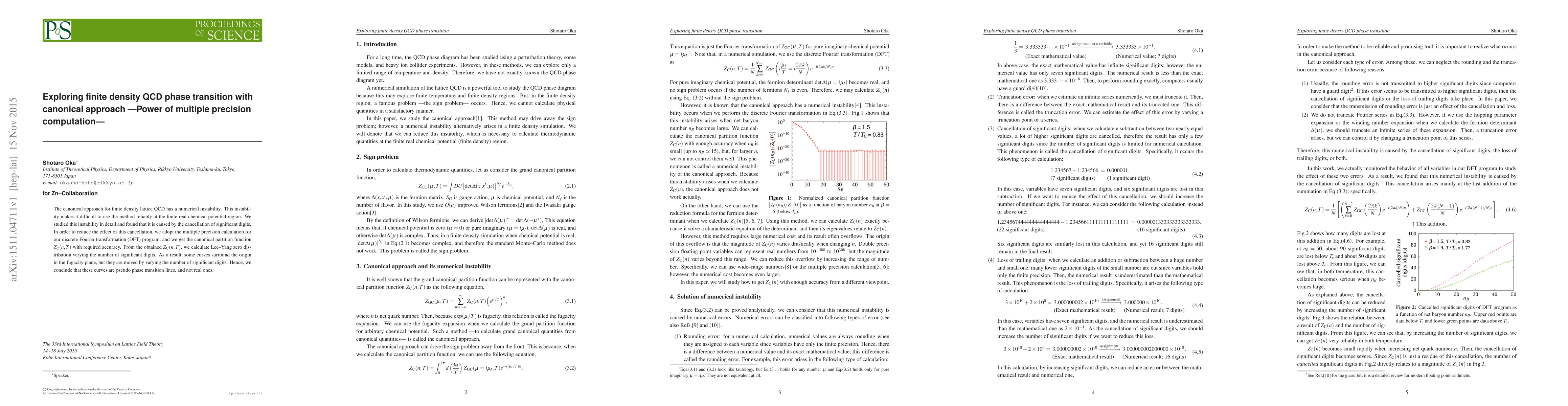 The paper investigates the numerical instability in the canonical approach for finite density lattice QCD, attributing it to significant digit cancellation. By employing multiple precision computation in the DFT program, the authors achieve accurate canonical partition functions, revealing that the observed pseudo phase transition lines in the Lee-Yang zero distribution are artifacts due to precision variations rather than true phase transitions.