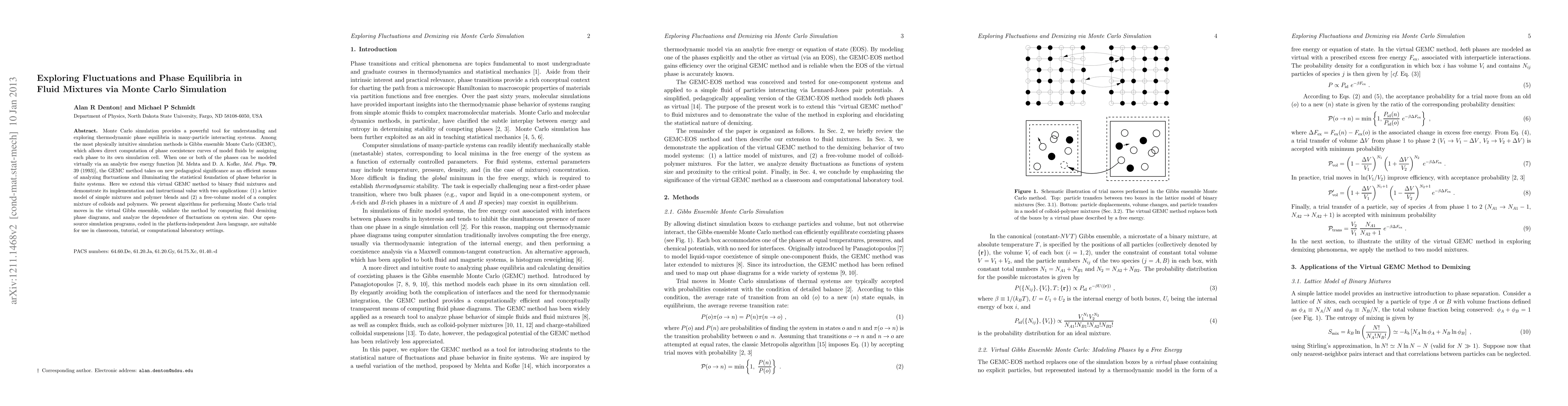 This paper explores the use of Gibbs ensemble Monte Carlo simulations to study phase equilibria and fluctuations in binary fluid mixtures, extending the virtual GEMC method to lattice models and free-volume models. The authors validate the method through demixing phase diagrams and provide open-source Java programs for educational use.