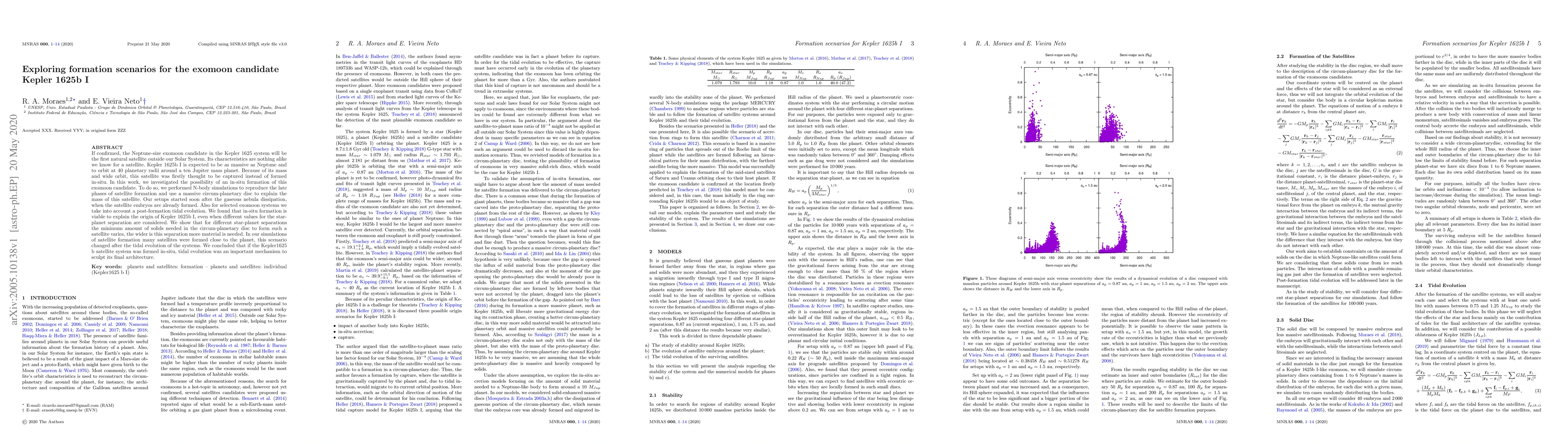 This paper explores the formation scenarios for the exomoon candidate Kepler 1625b I, which could be the first confirmed exomoon. The study uses N-body simulations to investigate the possibility of its in-situ formation, finding that tidal evolution plays a crucial role in shaping its final architecture.