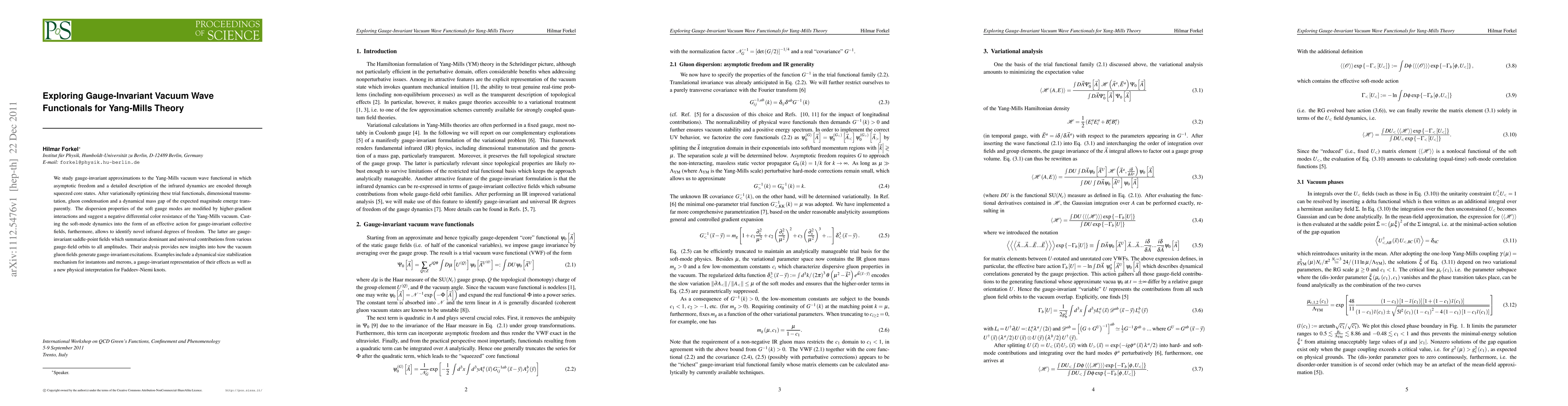 This paper explores gauge-invariant approximations to the Yang-Mills vacuum wave functional, revealing emergent phenomena such as dimensional transmutation and gluon condensation, and identifies novel infrared degrees of freedom through effective action formulations.