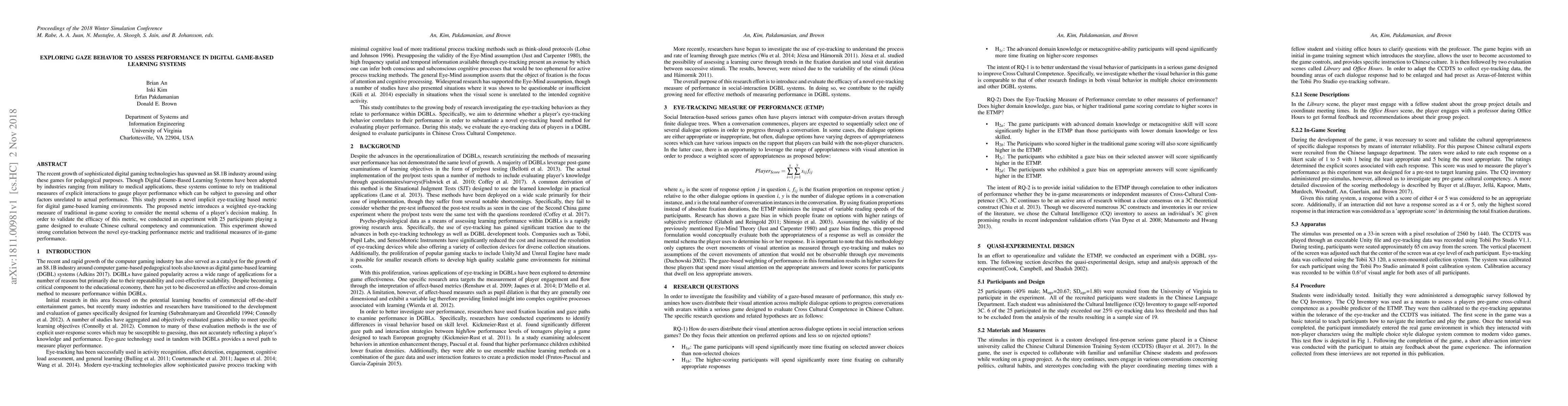 This study introduces a novel eye-tracking based metric to assess performance in digital game-based learning systems, moving beyond traditional interaction measures. Experimental results with 25 participants show a strong correlation between the new metric and conventional in-game performance metrics.