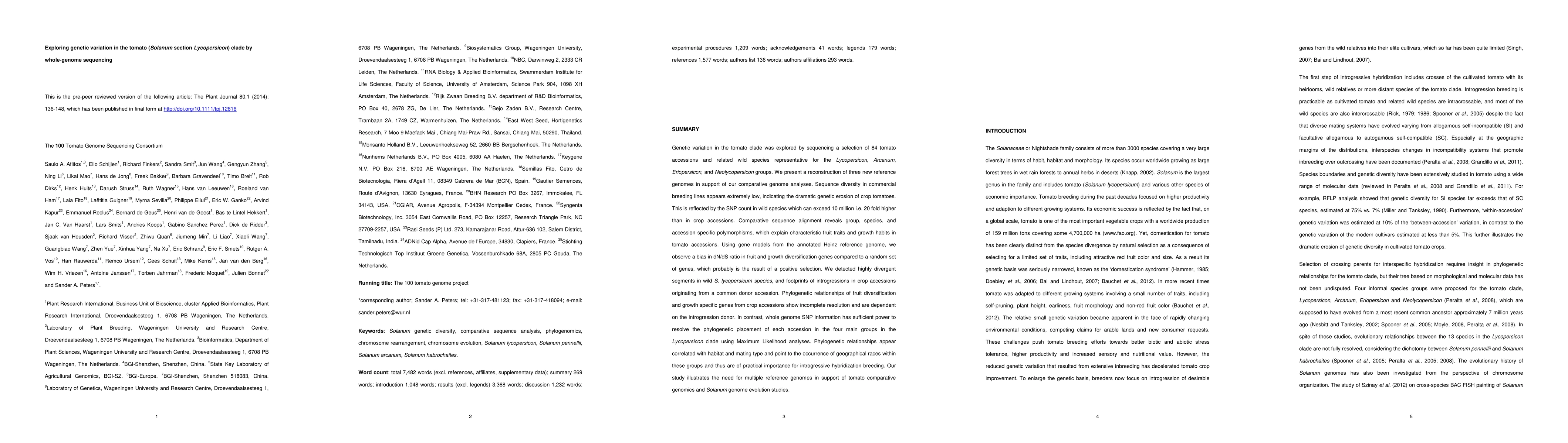 This study explores genetic variation in the tomato clade using whole-genome sequencing of 84 tomato accessions and related wild species, revealing significant genetic erosion in commercial breeding lines. The research highlights the importance of multiple reference genomes for understanding tomato evolution and breeding strategies.