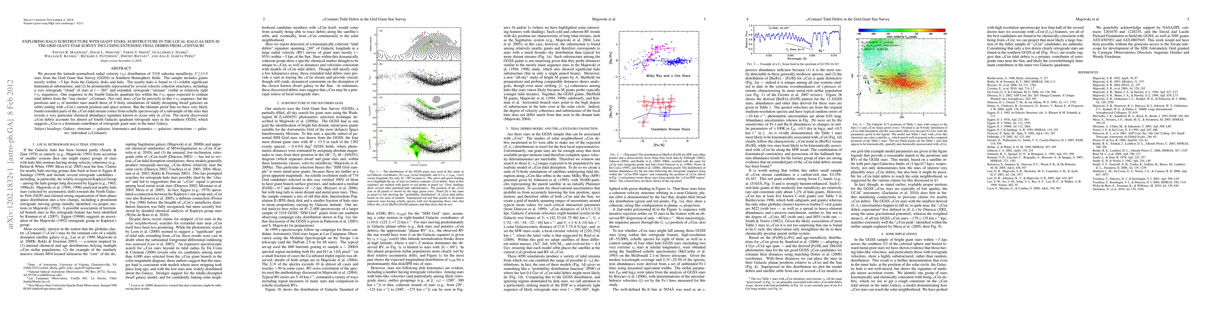 This paper explores the kinematic substructure of the local Galactic halo using the Grid Giant Star Survey, revealing significant substructure and coherent velocity structures. It identifies extended retrograde tidal debris from the Omega Centauri star cluster, confirmed by spectroscopic signatures, suggesting Omega Centauri significantly contributes to the retrograde giant stars in the inner Galaxy.