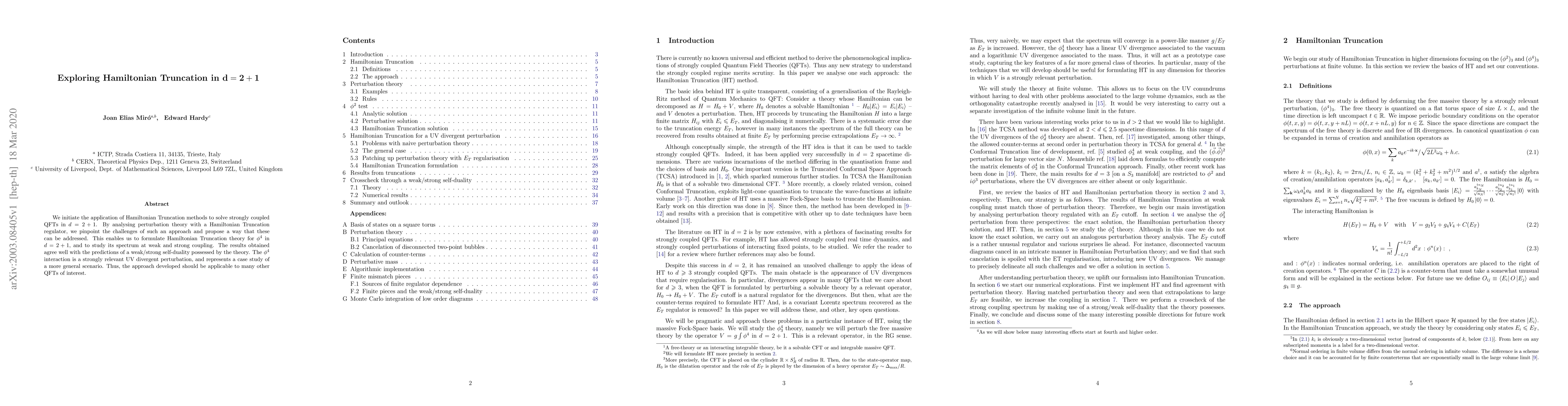 This paper applies Hamiltonian Truncation methods to solve strongly coupled $\phi^4$ QFTs in $d=2+1$, identifying challenges and proposing solutions. The results align with self-duality predictions, demonstrating the method's potential for broader applicability in QFT.