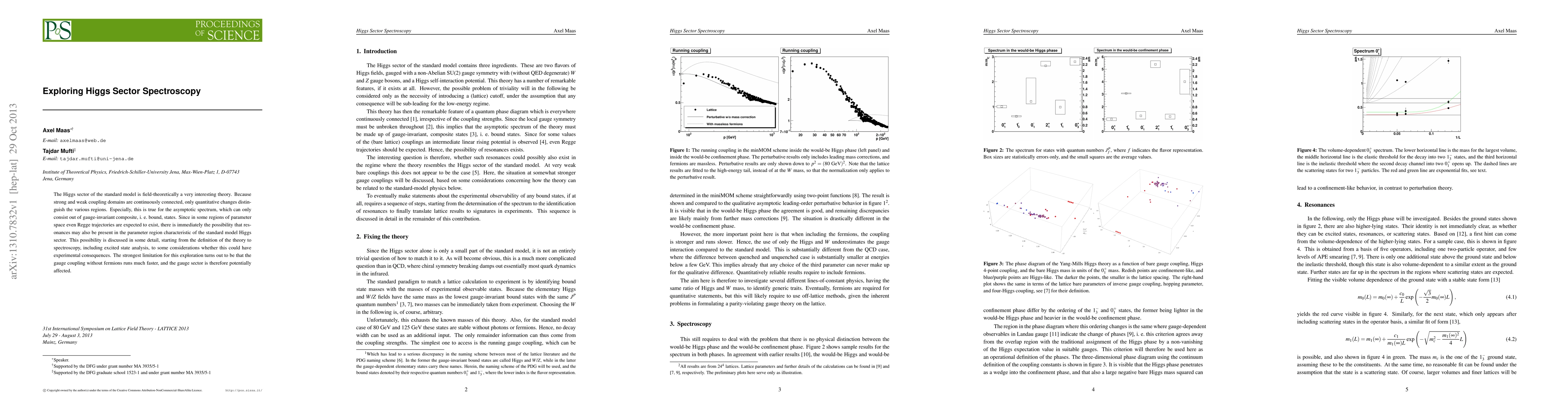 The Higgs sector of the standard model is field-theoretically a very interesting theory. Because strong and weak coupling domains are continuously connected, only quantitative changes distinguish the various regions. Especially, this is true for the asymptotic spectrum, which can only consist out of gauge-invariant composite, i. e. bound, states. Since in some regions of parameter space even Regge trajectories are expected to exist, there is immediately the possibility that resonances may also be present in the parameter region characteristic of the standard model Higgs sector. This possibility is discussed in some detail, starting from the definition of the theory to spectroscopy, including excited state analysis, to some considerations whether this could have experimental consequences. The strongest limitation for this exploration turns out to be that the gauge coupling without fermions runs much faster, and the gauge sector is therefore potentially affected.