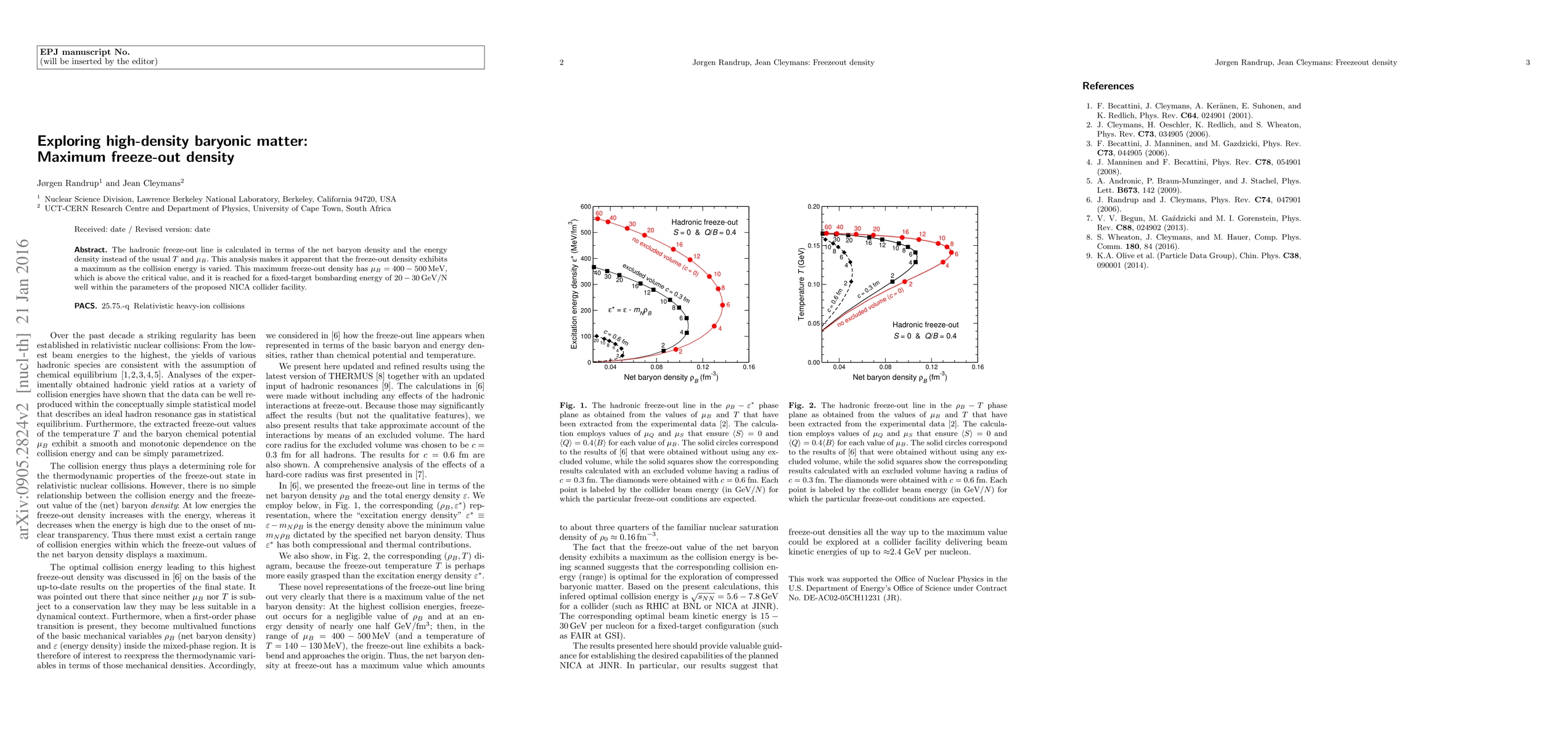 The hadronic freeze-out line is calculated in terms of the net baryon density and the energy density instead of the usual T and mu_B. This analysis makes it apparent that the freeze-out density exhibits a maximum as the collision energy is decreased. This maximum freeze-out density is well within the parameters of the proposed NICA accelerator.
