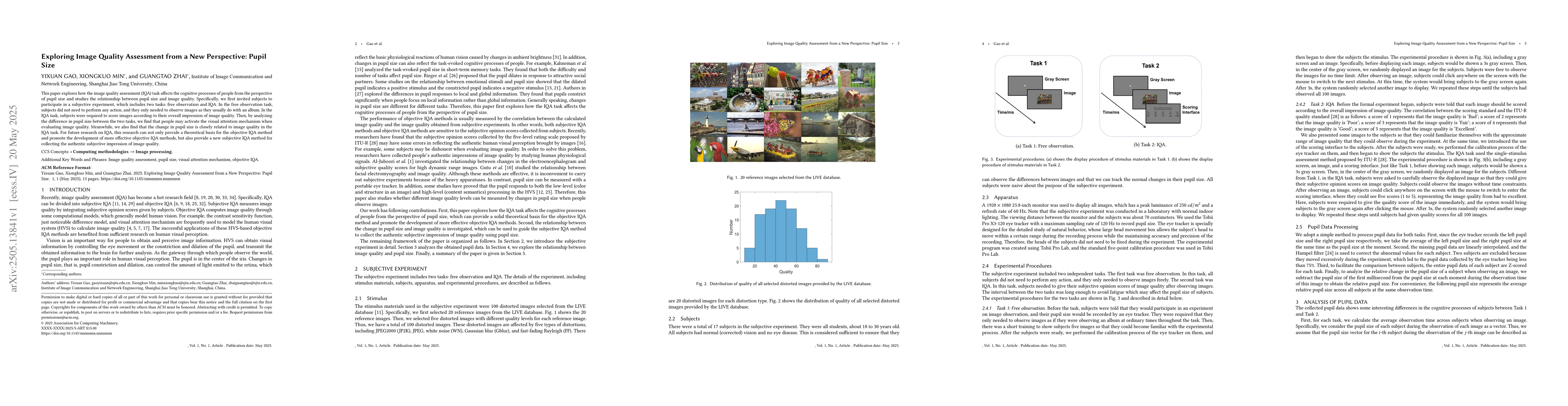 Demonstrates the relationship between pupil size and image quality assessment, proposing a novel subjective IQA method based on pupil dilation.