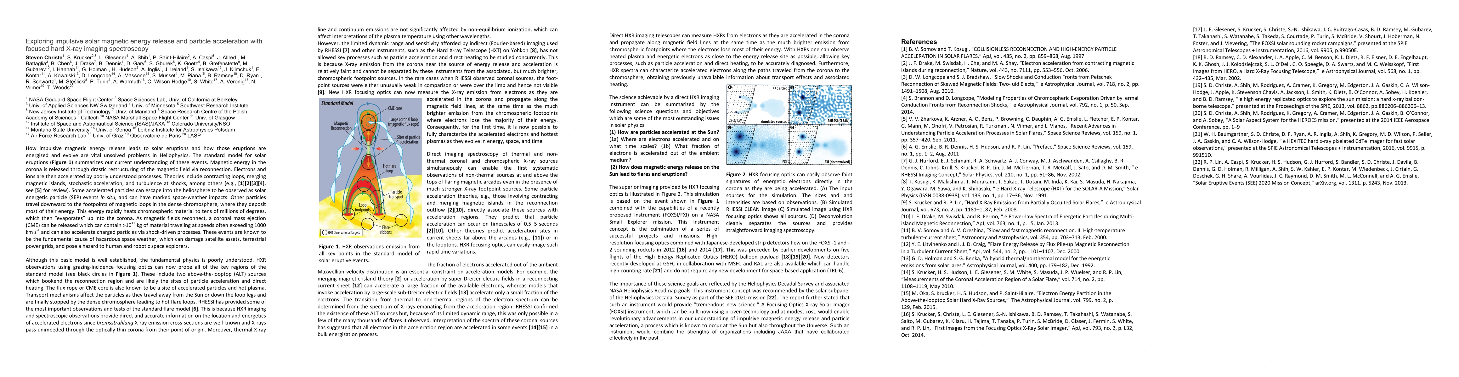 How impulsive magnetic energy release leads to solar eruptions and how those eruptions are energized and evolve are vital unsolved problems in Heliophysics. The standard model for solar eruptions summarizes our current understanding of these events. Magnetic energy in the corona is released through drastic restructuring of the magnetic field via reconnection. Electrons and ions are then accelerated by poorly understood processes. Theories include contracting loops, merging magnetic islands, stochastic acceleration, and turbulence at shocks, among others. Although this basic model is well established, the fundamental physics is poorly understood. HXR observations using grazing-incidence focusing optics can now probe all of the key regions of the standard model. These include two above-the-looptop (ALT) sources which bookend the reconnection region and are likely the sites of particle acceleration and direct heating. The science achievable by a direct HXR imaging instrument can be summarized by the following science questions and objectives which are some of the most outstanding issues in solar physics (1) How are particles accelerated at the Sun? (1a) Where are electrons accelerated and on what time scales? (1b) What fraction of electrons is accelerated out of the ambient medium? (2) How does magnetic energy release on the Sun lead to flares and eruptions? A Focusing Optics X-ray Solar Imager (FOXSI) instrument, which can be built now using proven technology and at modest cost, would enable revolutionary advancements in our understanding of impulsive magnetic energy release and particle acceleration, a process which is known to occur at the Sun but also throughout the Universe.