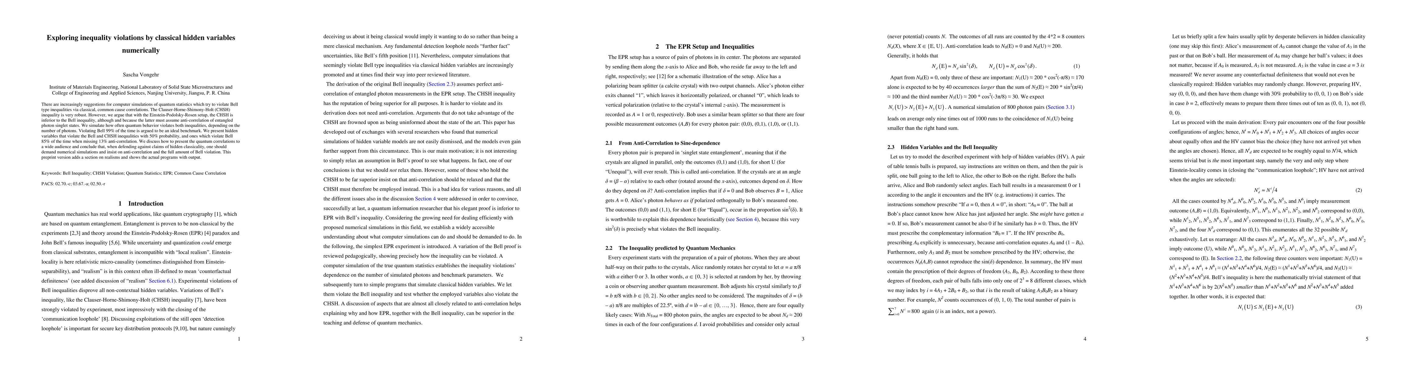 This paper explores the violation of Bell and CHSH inequalities through classical hidden variables in quantum simulations, arguing that the Bell inequality is more robust due to its requirement for anti-correlation in entangled photon states. The authors present numerical simulations showing that hidden variables can violate these inequalities with significant probabilities, advocating for the demand of numerical simulations and anti-correlation to defend against hidden classicality claims.