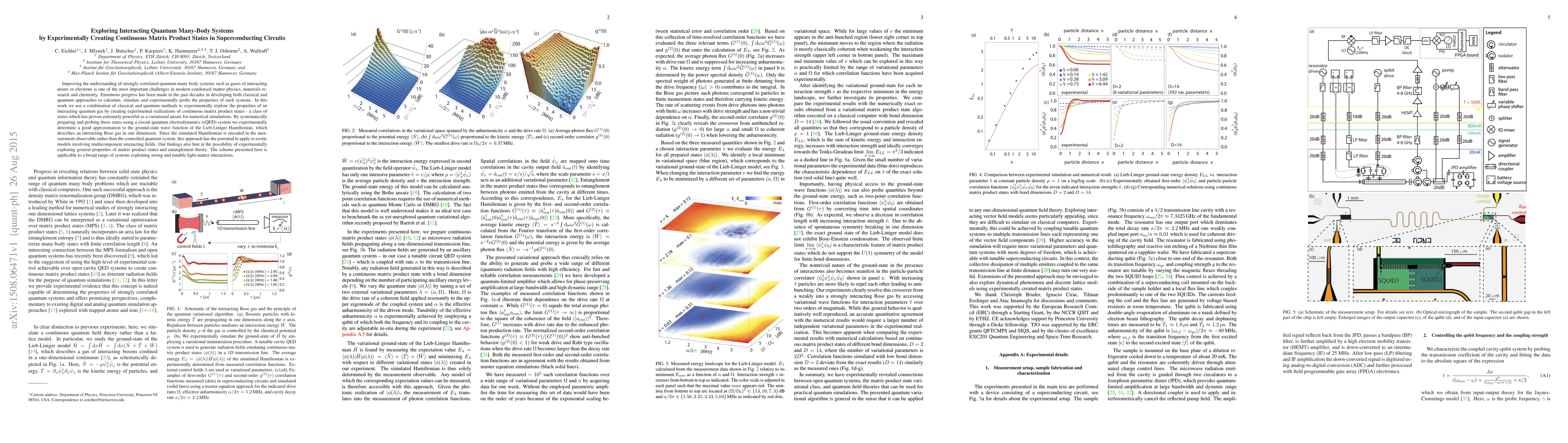 This paper explores interacting quantum many-body systems by creating continuous matrix product states using superconducting circuits. The authors determine an approximation to the ground-state wave function of the Lieb-Liniger Hamiltonian, demonstrating the potential for studying exotic models and general properties of matrix product states.