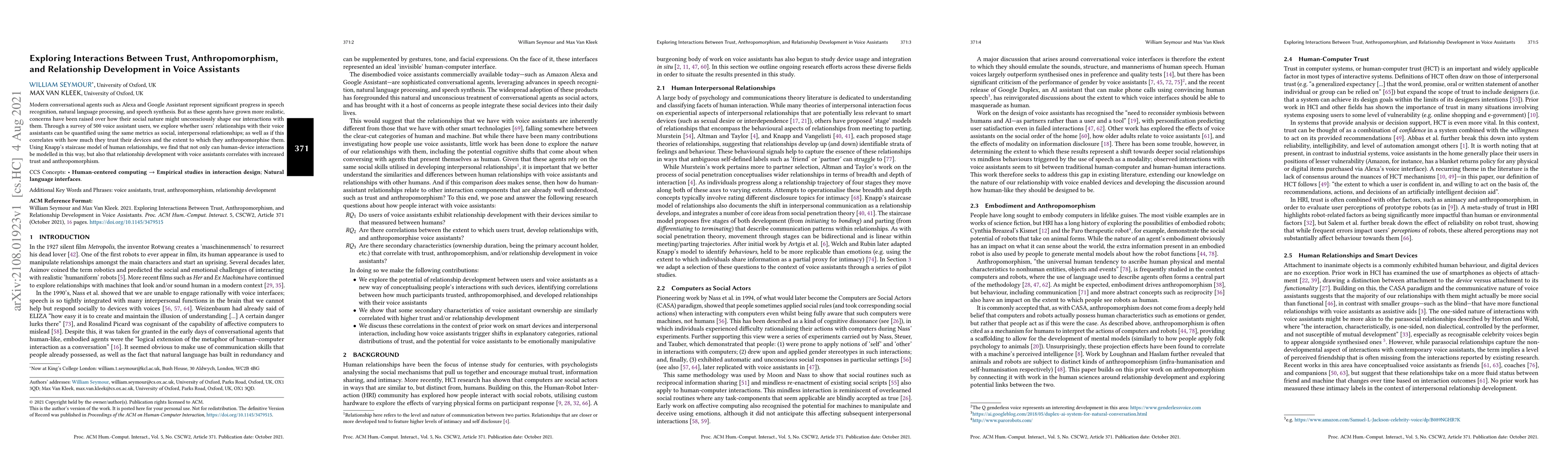 This study investigates how users' relationships with voice assistants like Alexa and Google Assistant develop, finding that these interactions can be quantified using interpersonal relationship metrics. The research reveals a correlation between relationship development, increased trust, and anthropomorphism towards the devices.