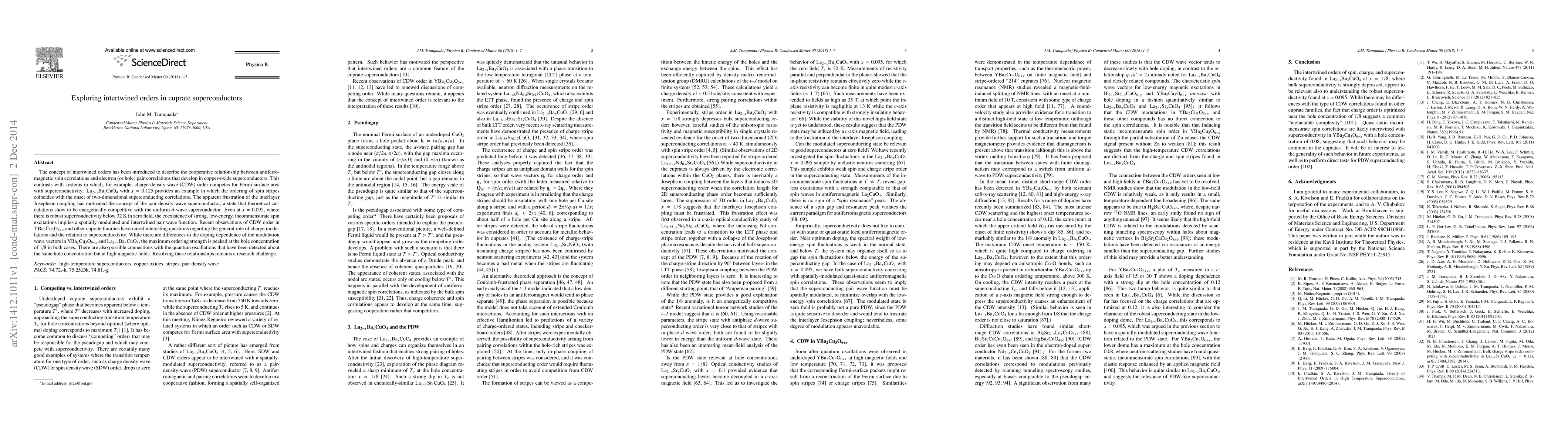 This paper explores the intertwined orders in cuprate superconductors, focusing on the cooperative relationship between antiferromagnetic spin correlations and superconducting pair correlations. It highlights the example of La$_{2-x}$Ba$_x$CuO$_4$ where spin stripe ordering coincides with superconductivity, and discusses the potential for pair-density-wave states. The study also examines the role of charge-density-wave order in YBa$_2$Cu$_3$O$_{6+x}$ and its relation to superconductivity, noting the peak ordering strength at a specific hole concentration.