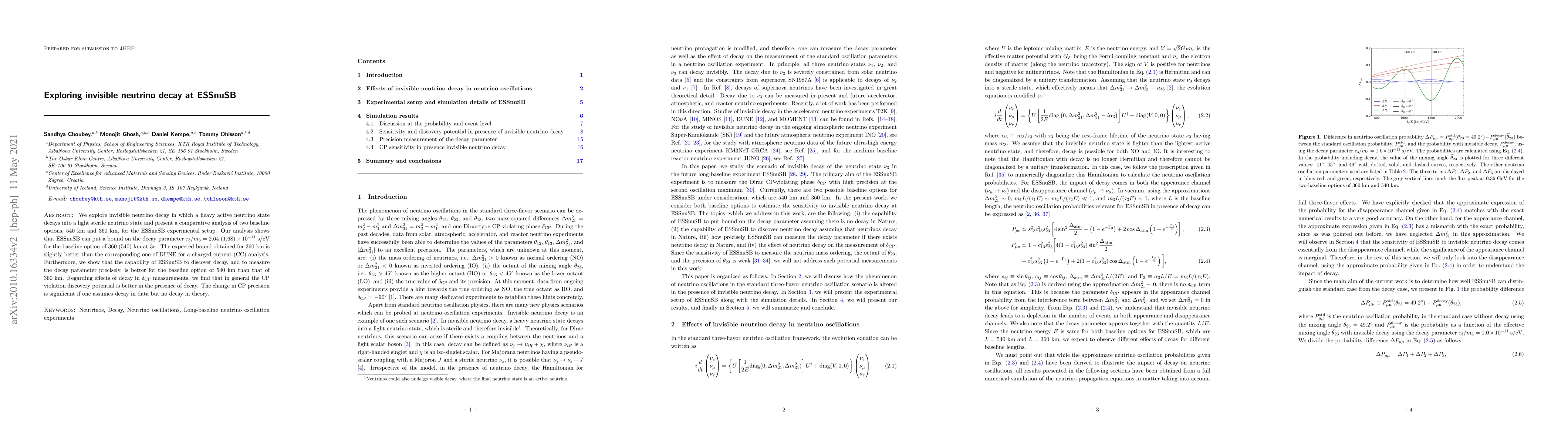 This paper investigates invisible neutrino decay at ESSnuSB, comparing two baseline options of 360 km and 540 km. ESSnuSB can constrain the decay parameter $\tau_3/m_3$ more effectively at 360 km than DUNE, and the 540 km option offers better precision for decay measurement.