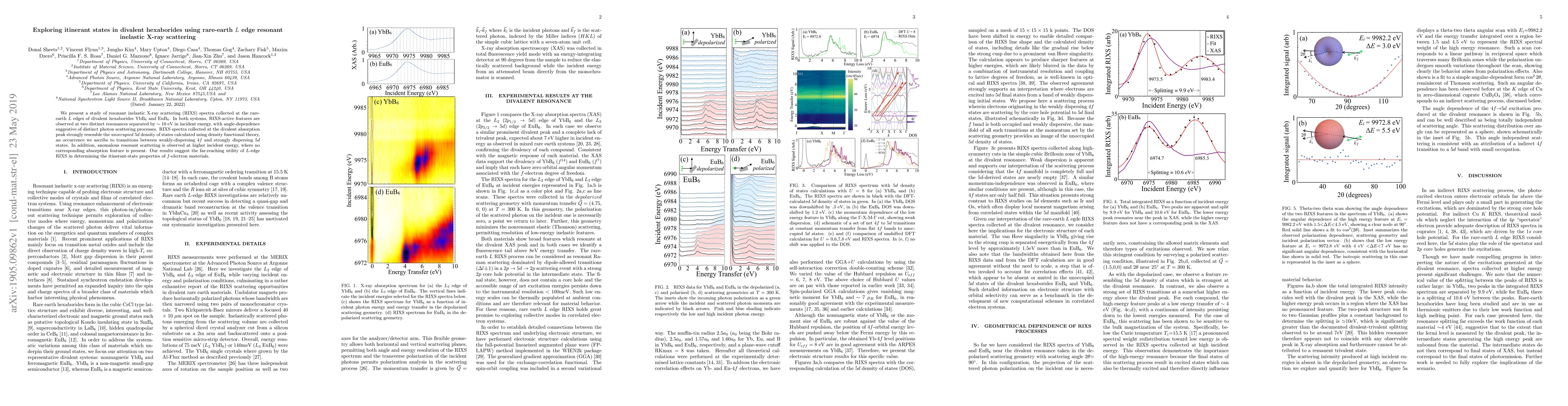 This study utilizes rare-earth $L$ edge resonant inelastic X-ray scattering (RIXS) to explore itinerant states in divalent hexaborides YbB$_6$ and EuB$_6$, revealing distinct RIXS-active features and transitions between 4$f$ and 5$d$ states, with implications for understanding $f$-electron materials.