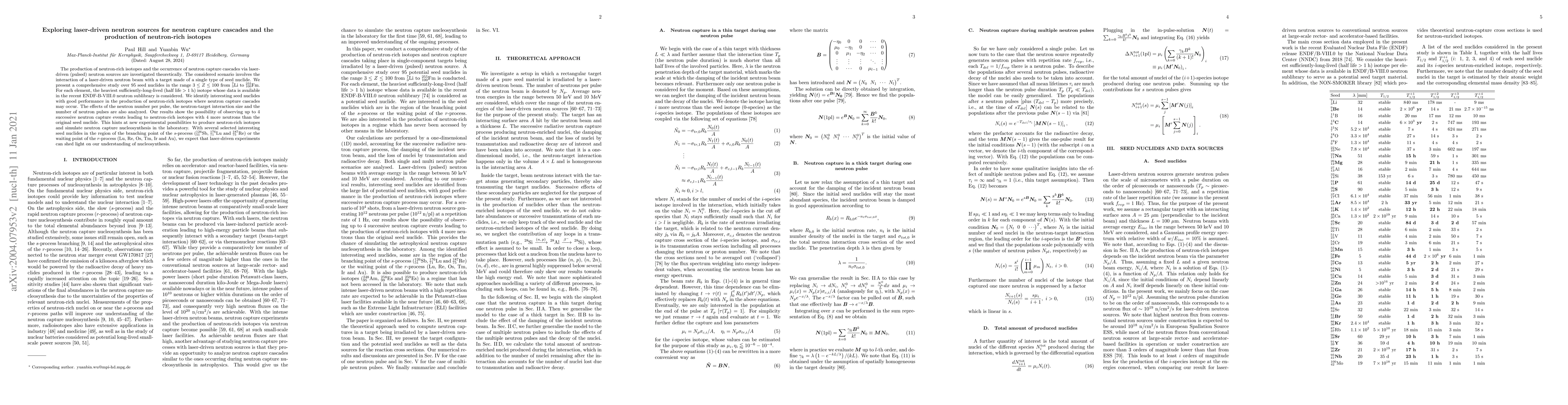 This paper explores the use of laser-driven neutron sources to produce neutron-rich isotopes and study neutron capture cascades. It identifies promising seed nuclides for neutron-rich isotope production and analyzes the impact of neutron pulses and interaction sizes, revealing potential for up to four successive neutron capture events.
