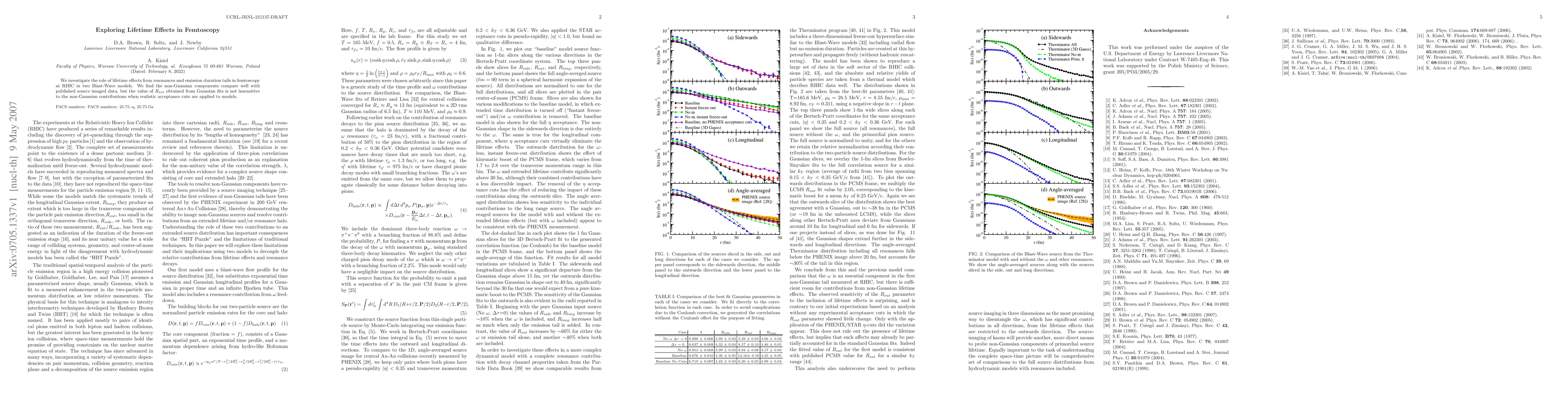 We investigate the role of lifetime effects from resonances and emission duration tails in femtoscopy at RHIC in two Blast-Wave models. We find the non-Gaussian components compare well with published source imaged data, but the value of R_out obtained from Gaussian fits is not insensitive to the non-Gaussian contributions when realistic acceptance cuts are applied to models.
