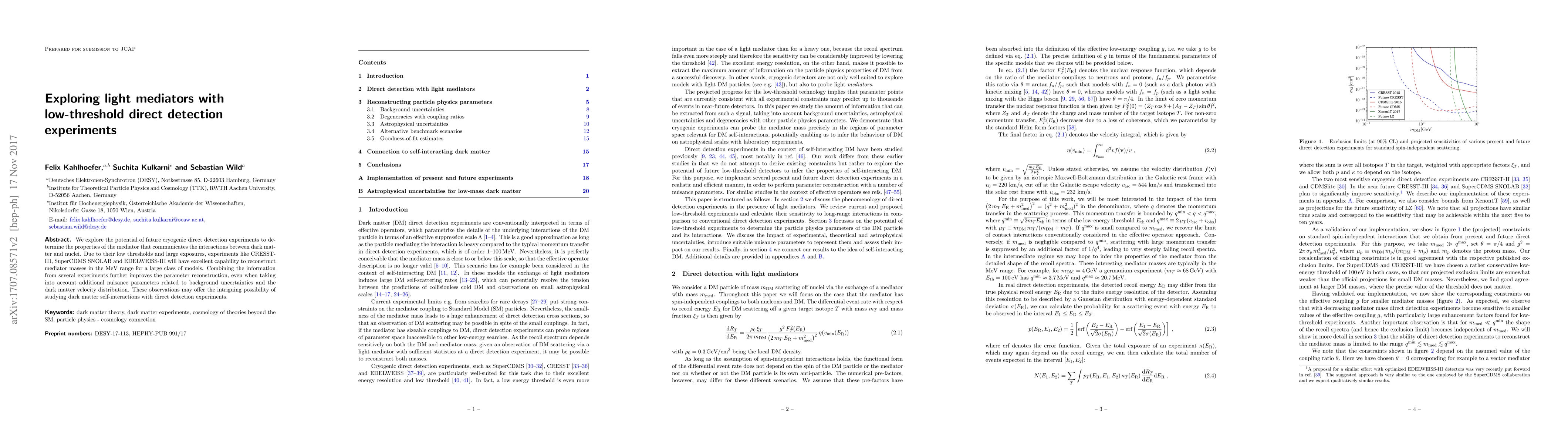 We explore the potential of future cryogenic direct detection experiments to determine the properties of the mediator that communicates the interactions between dark matter and nuclei. Due to their low thresholds and large exposures, experiments like CRESST-III, SuperCDMS SNOLAB and EDELWEISS-III will have excellent capability to reconstruct mediator masses in the MeV range for a large class of models. Combining the information from several experiments further improves the parameter reconstruction, even when taking into account additional nuisance parameters related to background uncertainties and the dark matter velocity distribution. These observations may offer the intriguing possibility of studying dark matter self-interactions with direct detection experiments.