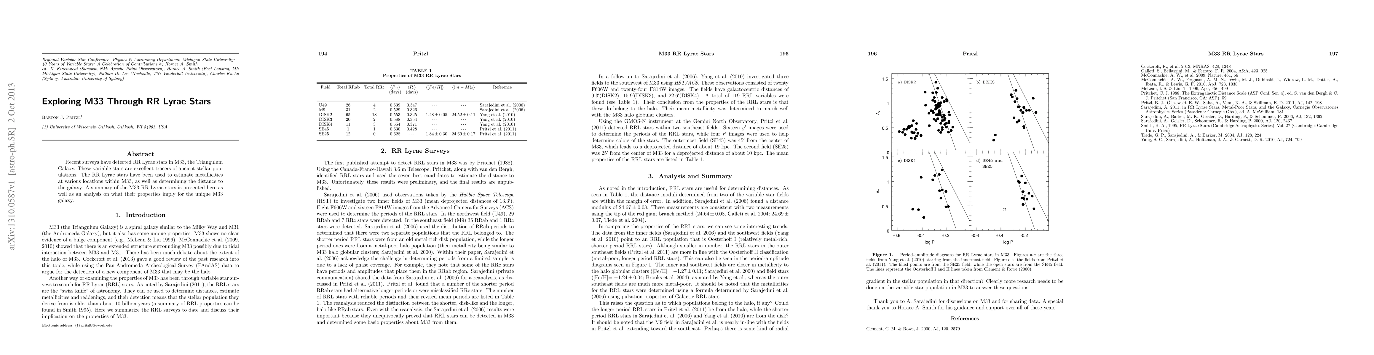 This research builds on previous work by Sarajedini et al. (2006) and Yang et al. (2010), extending the analysis to additional fields and providing a more comprehensive view of the RR Lyrae star populations in M33, including their metallicities and distances.