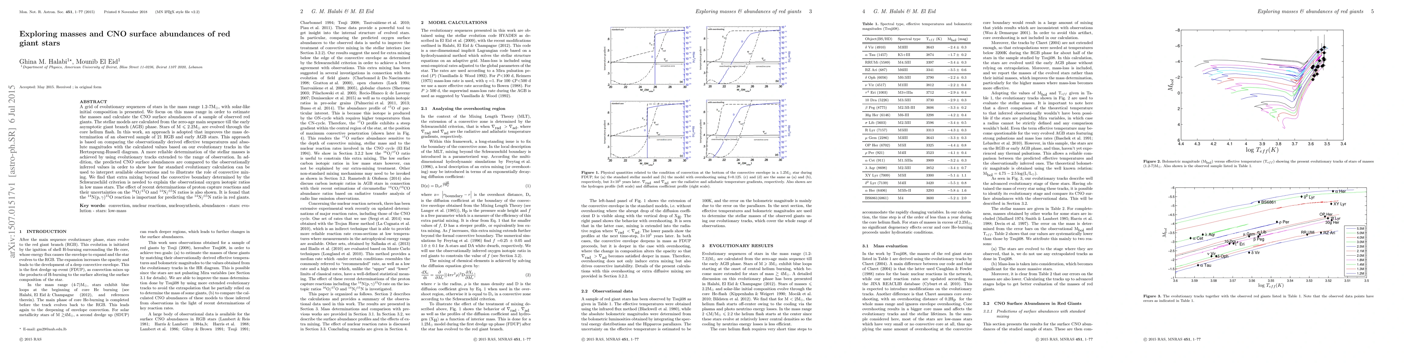 A grid of evolutionary sequences of stars in the mass range $1.2$-$7$ M$_{\odot}$, with solar-like initial composition is presented. We focus on this mass range in order to estimate the masses and calculate the CNO surface abundances of a sample of observed red giants. The stellar models are calculated from the zero-age main sequence till the early asymptotic giant branch (AGB) phase. Stars of M $\leqslant$ $2.2$M$_{\odot}$ are evolved through the core helium flash. In this work, an approach is adopted that improves the mass determination of an observed sample of 21 RGB and early AGB stars. This approach is based on comparing the observationally derived effective temperatures and absolute magnitudes with the calculated values based on our evolutionary tracks in the Hertzsprung-Russell diagram. A more reliable determination of the stellar masses is achieved by using evolutionary tracks extended to the range of observation. In addition, the predicted CNO surface abundances are compared to the observationally inferred values in order to show how far standard evolutionary calculation can be used to interpret available observations and to illustrate the role of convective mixing. We find that extra mixing beyond the convective boundary determined by the Schwarzschild criterion is needed to explain the observational oxygen isotopic ratios in low mass stars. The effect of recent determinations of proton capture reactions and their uncertainties on the $^{16}$O$/^{17}$O and $^{14} $N$/^{15}$N ratios is also shown. It is found that the $^{14}$N$($ p$,\gamma)^{15}$O reaction is important for predicting the $^{14}$N$/^{15}$N ratio in red giants.