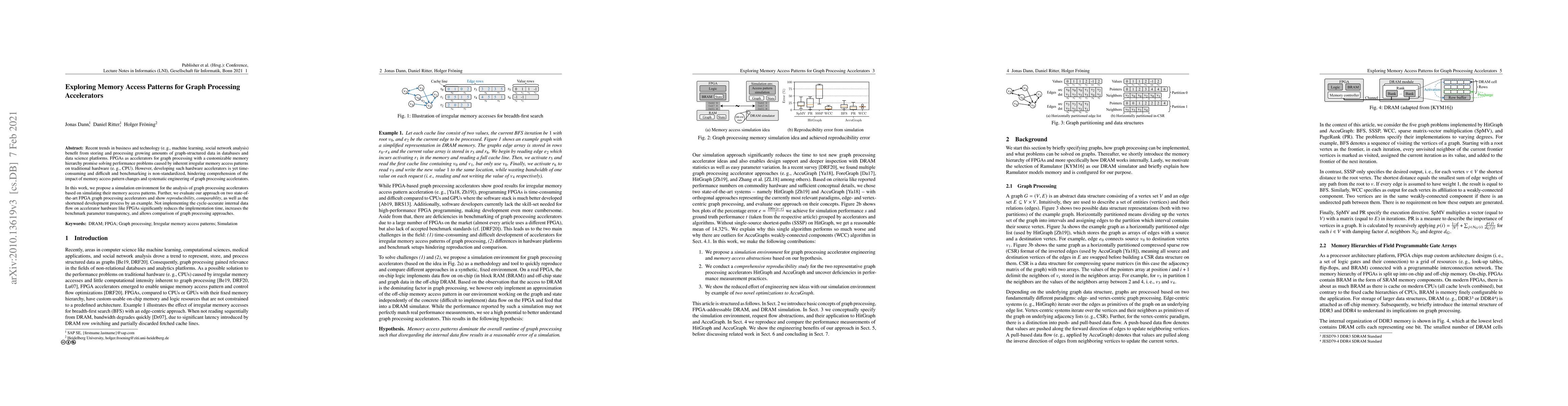 This paper introduces a simulation environment to analyze memory access patterns for FPGA-based graph processing accelerators, demonstrating its effectiveness through evaluation on two state-of-the-art accelerators, thus reducing development time and improving benchmarking standardization.