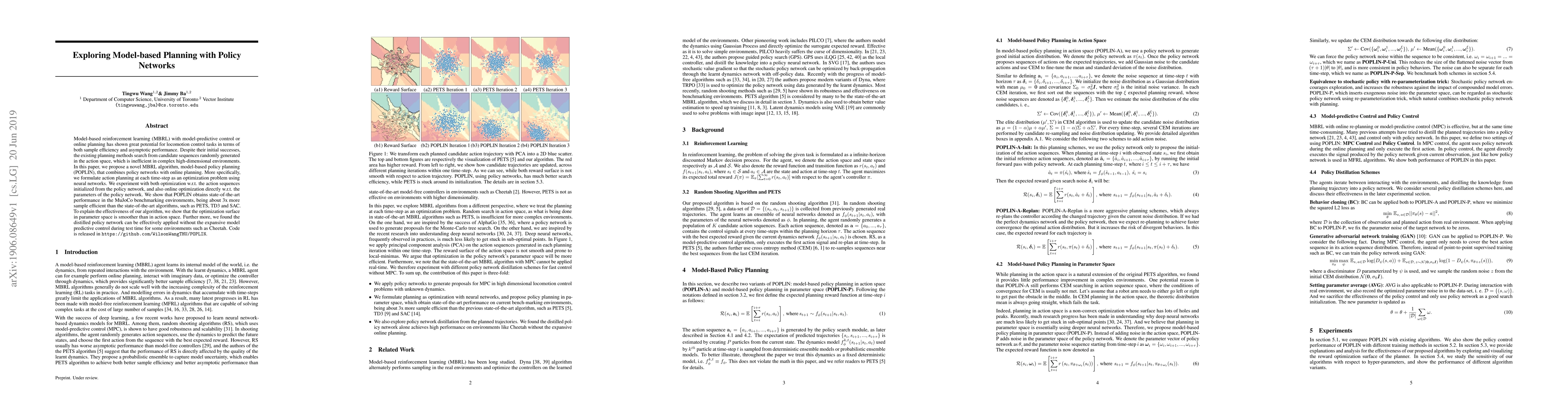 This paper introduces a novel model-based reinforcement learning algorithm called POPLIN, which combines policy networks with online planning to enhance sample efficiency and performance in complex environments. The proposed method outperforms existing algorithms by optimizing policy parameters directly, demonstrating smoother optimization surfaces and effective application in environments like Cheetah.