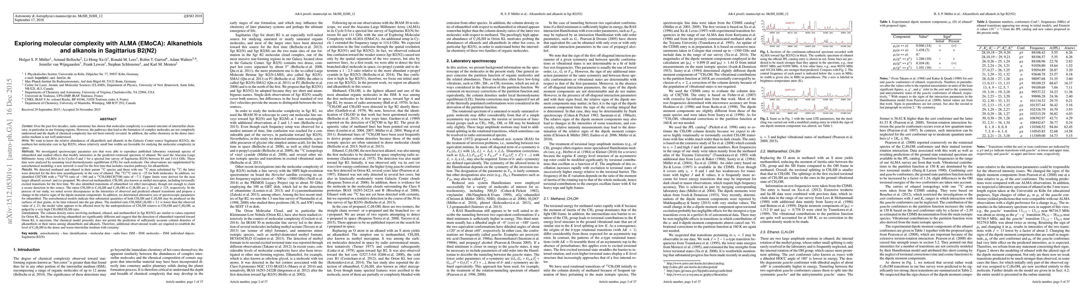 Research using ALMA found that alkanethiols and alkanols in the Sagittarius B2(N2) star-forming region have different column density ratios than previously thought, highlighting the need for further observational results to confirm their abundance.