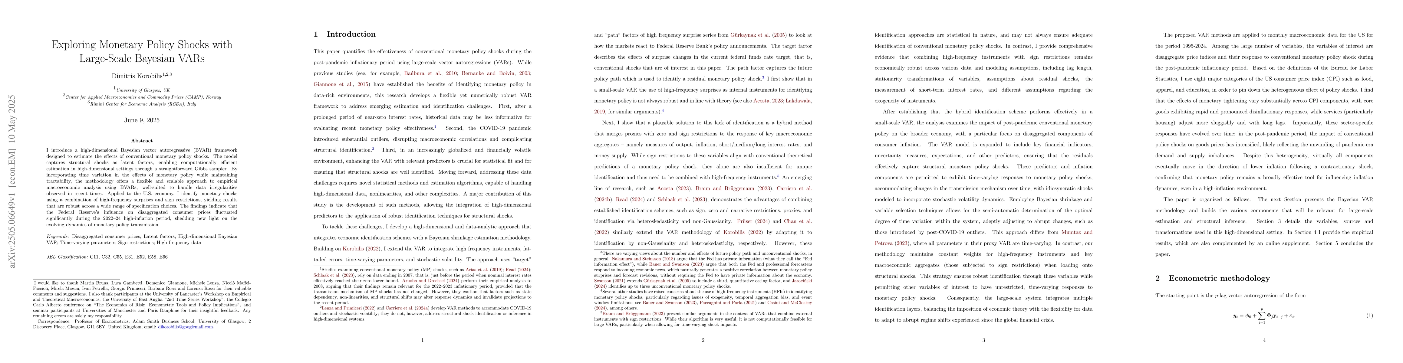 The research introduces a high-dimensional Bayesian vector autoregressive (BVAR) framework for estimating the effects of conventional monetary policy shocks, using a Gibbs sampler for computationally efficient estimation in high-dimensional settings.