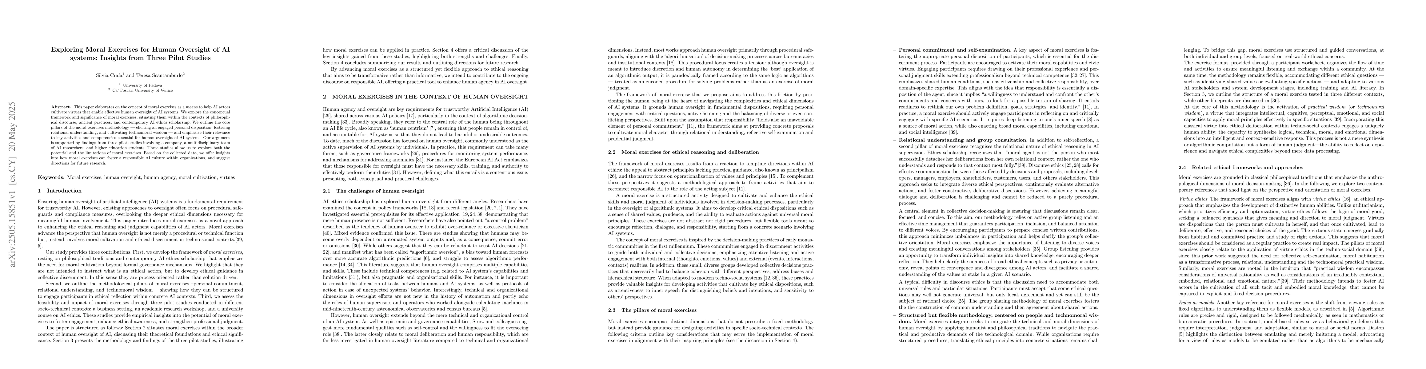 The paper presents a conceptual framework and core pillars of moral exercises methodology for human oversight of AI systems.