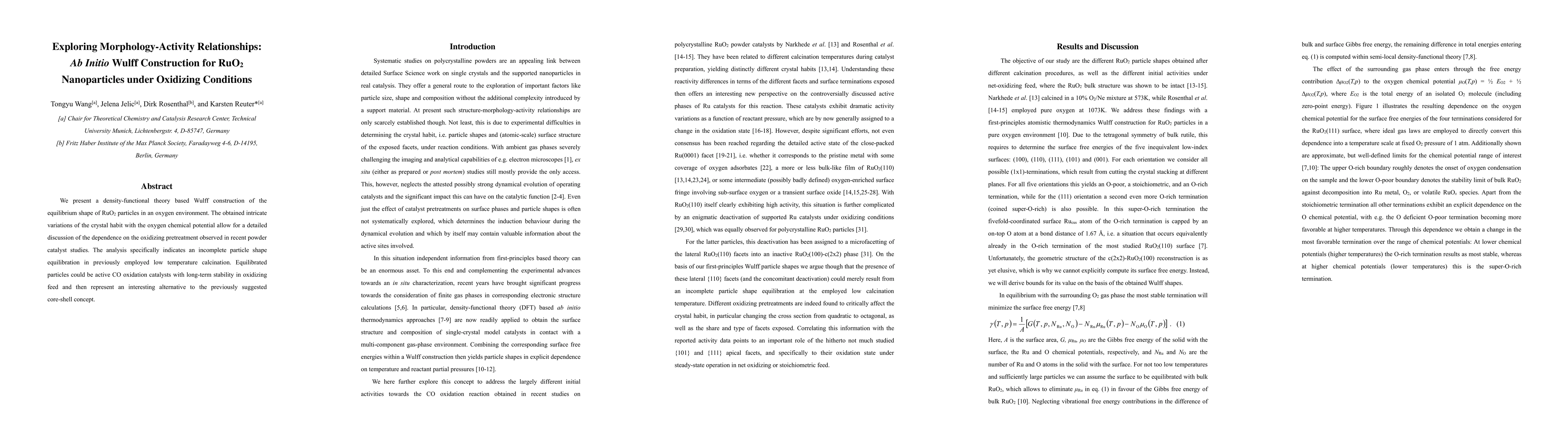 This paper uses density-functional theory to model the equilibrium shape of RuO2 nanoparticles in an oxidizing environment, revealing that low-temperature calcination does not fully equilibrate particle shapes. The study suggests that fully equilibrated particles could serve as stable catalysts for CO oxidation, offering a potential alternative to core-shell configurations.