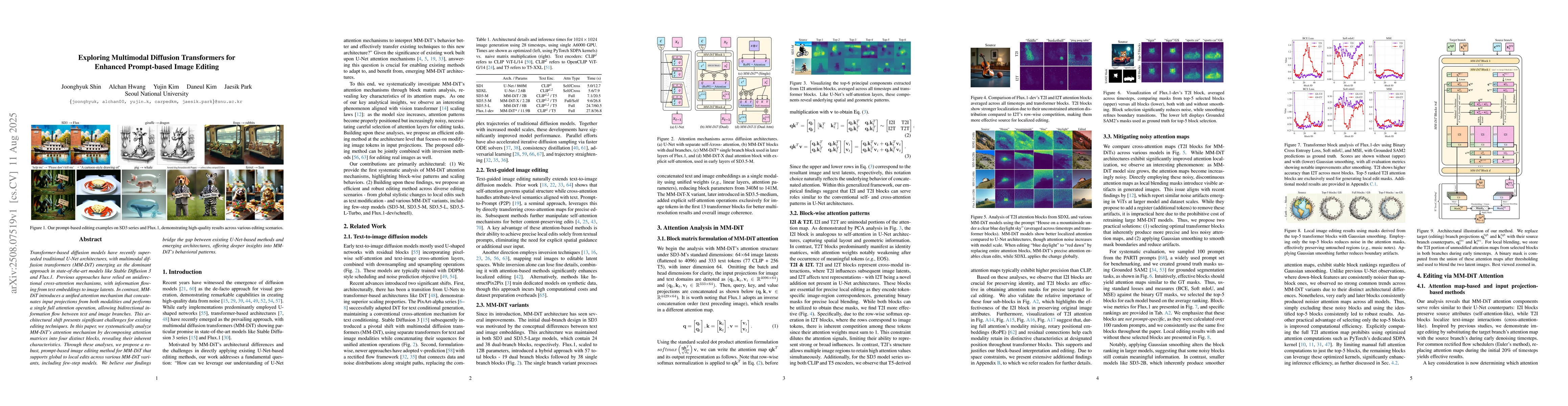 The paper systematically analyzes the multimodal diffusion transformers (MM-DiT) attention mechanism by decomposing attention matrices into four distinct blocks, revealing their inherent characteristics. This analysis leads to the proposal of a robust, prompt-based image editing method for MM-DiT supporting global to local edits across various MM-DiT variants.