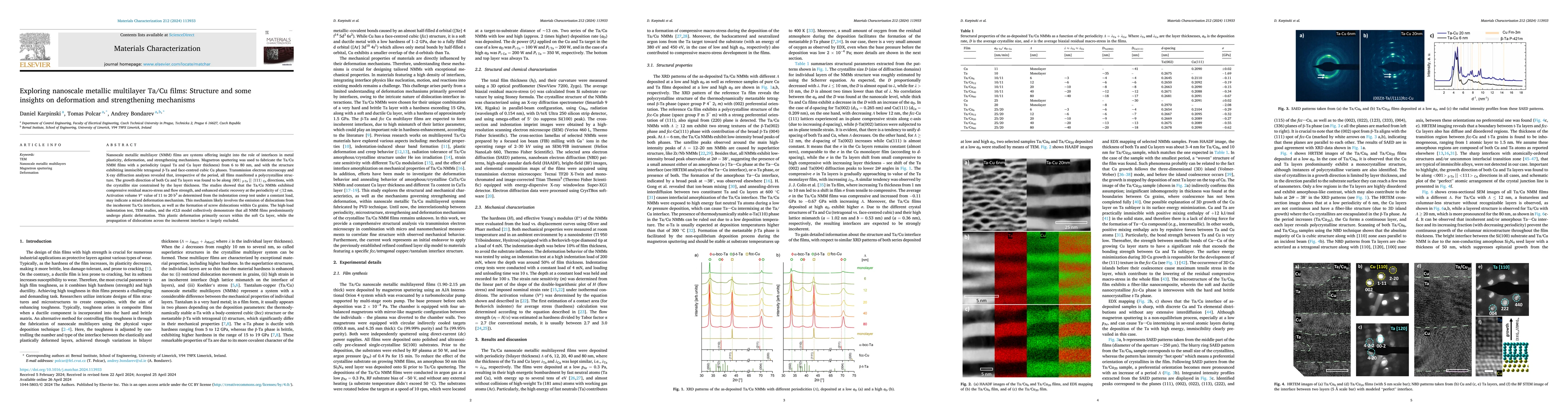 Nanoscale metallic multilayer (NMM) films are systems offering insight into the role of interfaces in metal plasticity, deformation, and strengthening mechanisms. Magnetron sputtering was used to fabricate the Ta-Cu NMM films with a periodicity (equal Ta and Cu layer thickness) from 6 to 80 nm, with resulting structure exhibiting strongly incoherent tetragonal beta-Ta and face-centered cubic Cu phase. The high-load indentation test, TEM studies, and the rCLS model collectively demonstrate that all NMM films predominantly undergo plastic deformation. This plastic deformation primarily occurs within the soft Cu layer, while the propagation of dislocations across the incoherent interface is largely excluded.