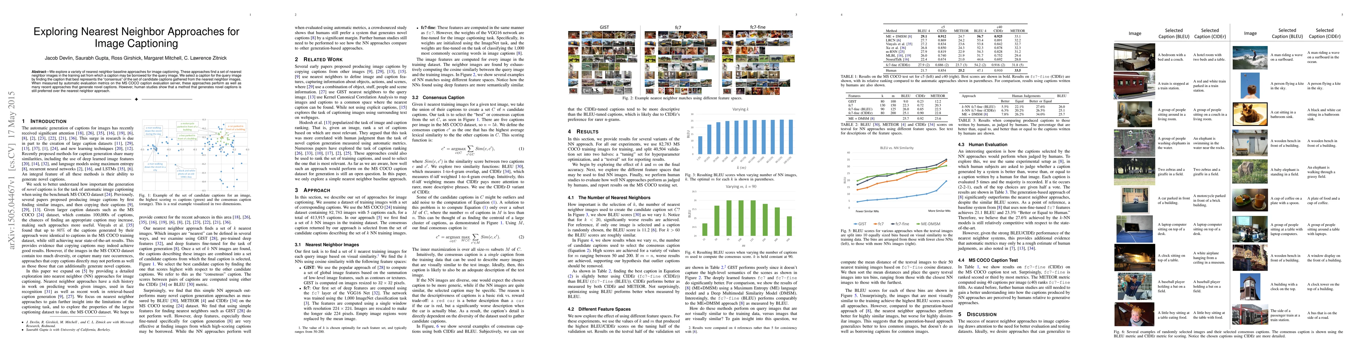 This paper investigates nearest neighbor baselines for image captioning, where captions are borrowed from the most similar images in the training set. Despite competitive performance on automatic metrics, human evaluations favor methods that generate novel captions over those that reuse existing captions.