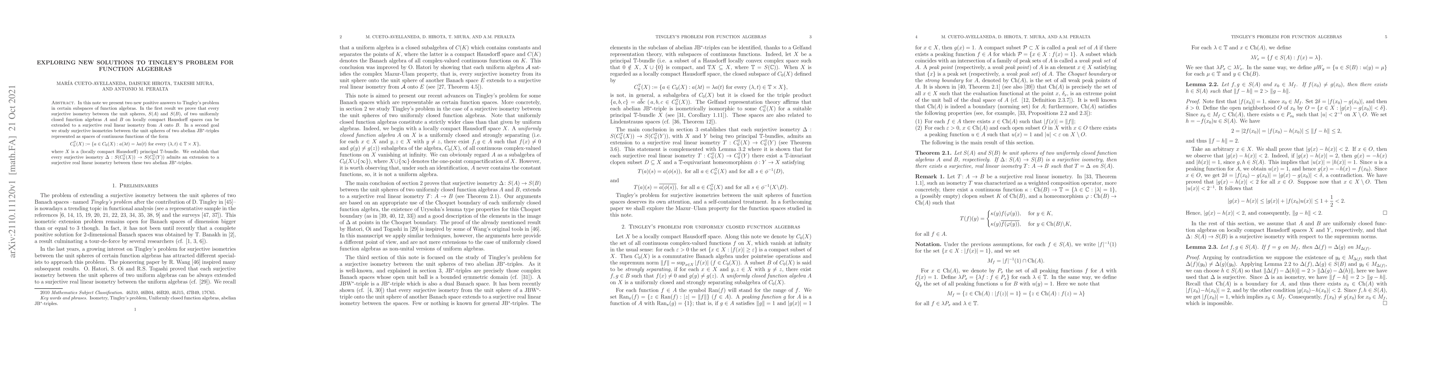 This paper provides new positive solutions to Tingley's problem in function algebras, proving that surjective isometries between unit spheres of certain uniformly closed function algebras can be extended to surjective real linear isometries between the algebras. Additionally, it shows that surjective isometries between unit spheres of abelian JB$^*$-triples represented as spaces of continuous functions can also be extended to surjective real linear isometries between these triples.